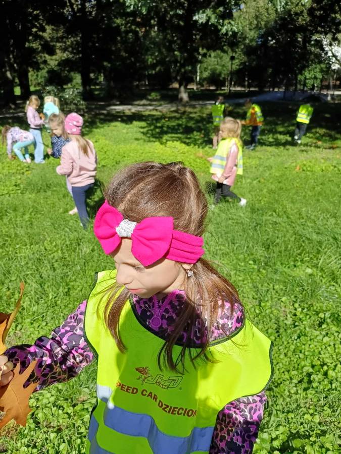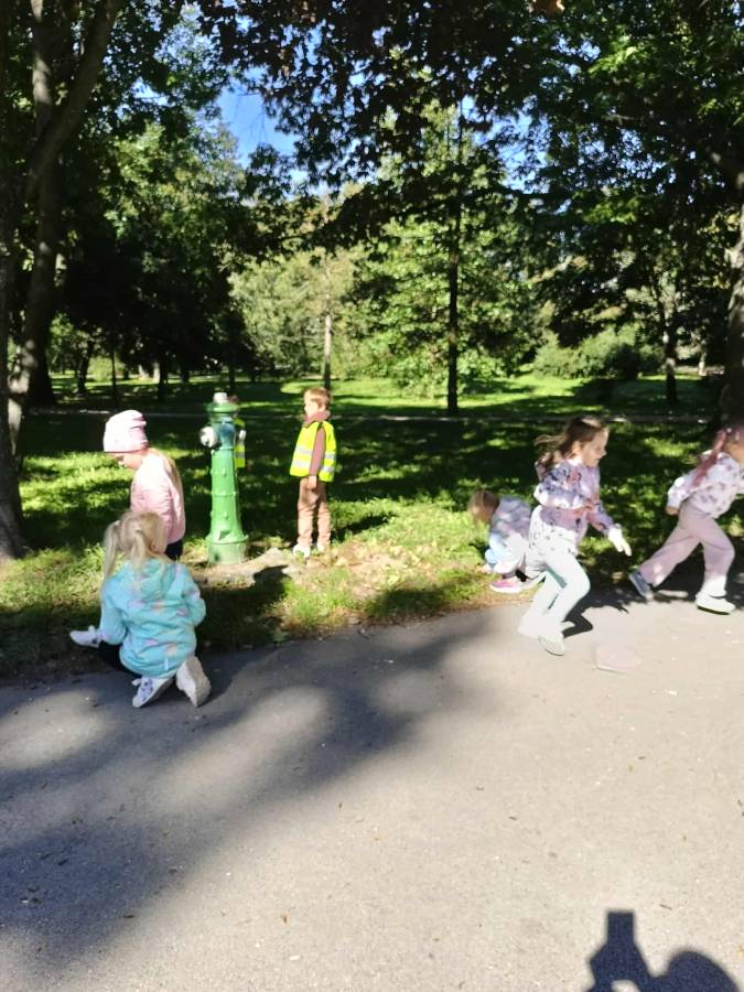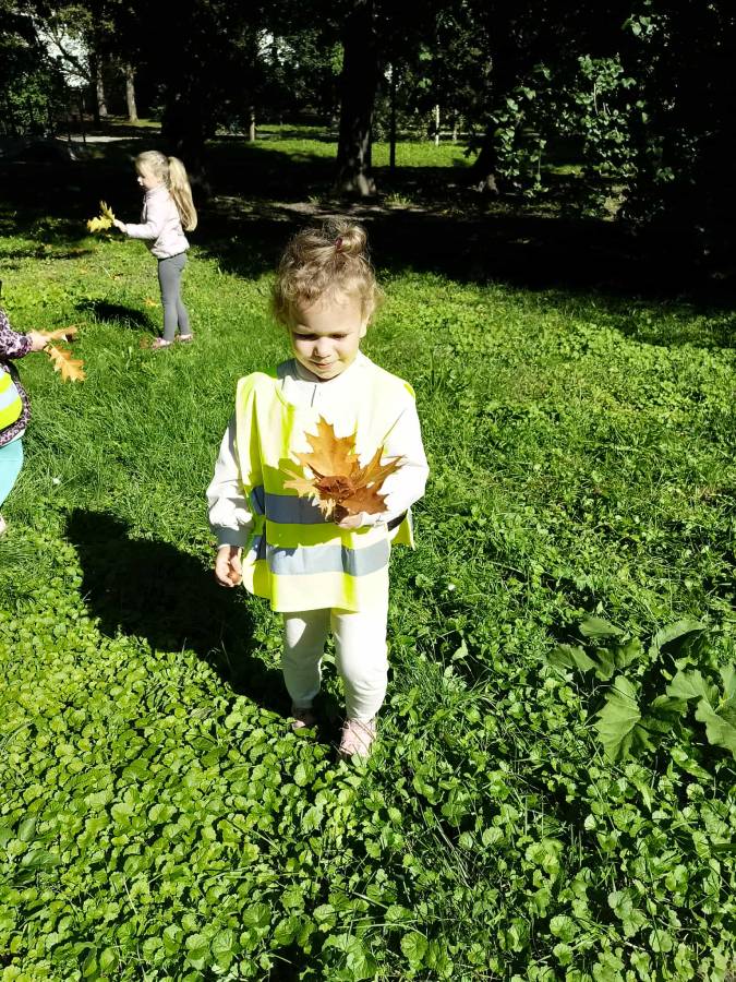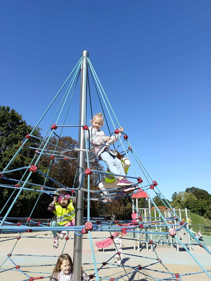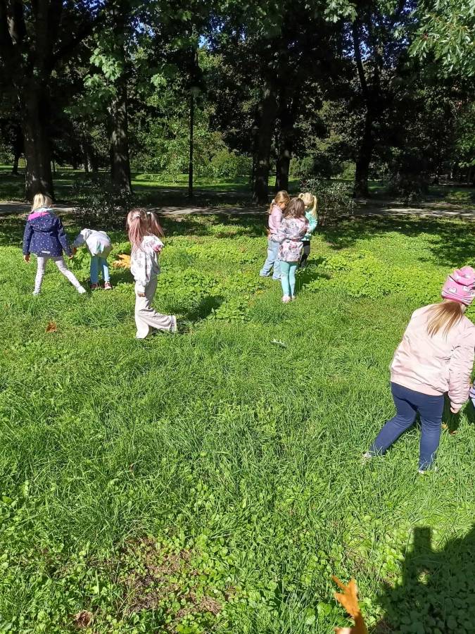 Kotki wybrały się na spacer po parku w poszukiwaniu oznak jesieni oraz skarbów do kącika przyrody. A wszystko to w ramach realizacji projektu ,,Postaw na wartości". Zwieńczeniem poszukiwań była zabawa na placu zabaw.