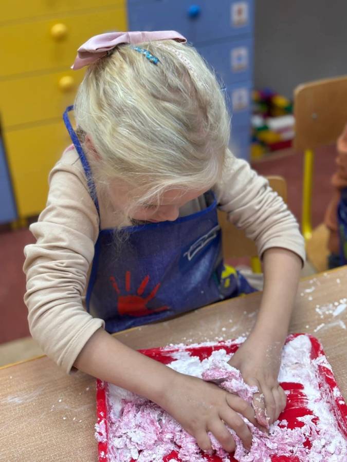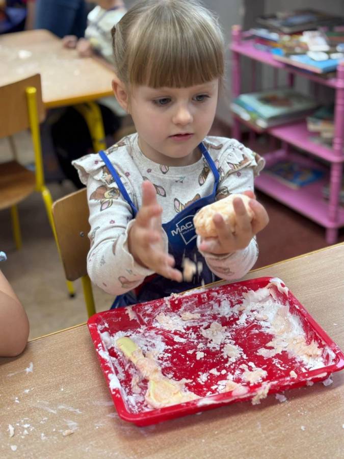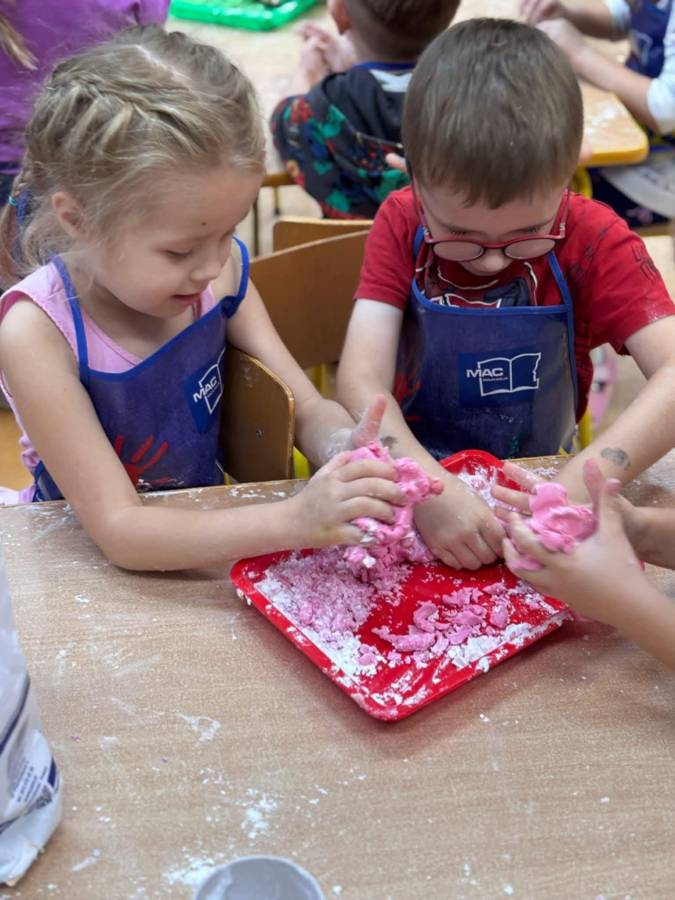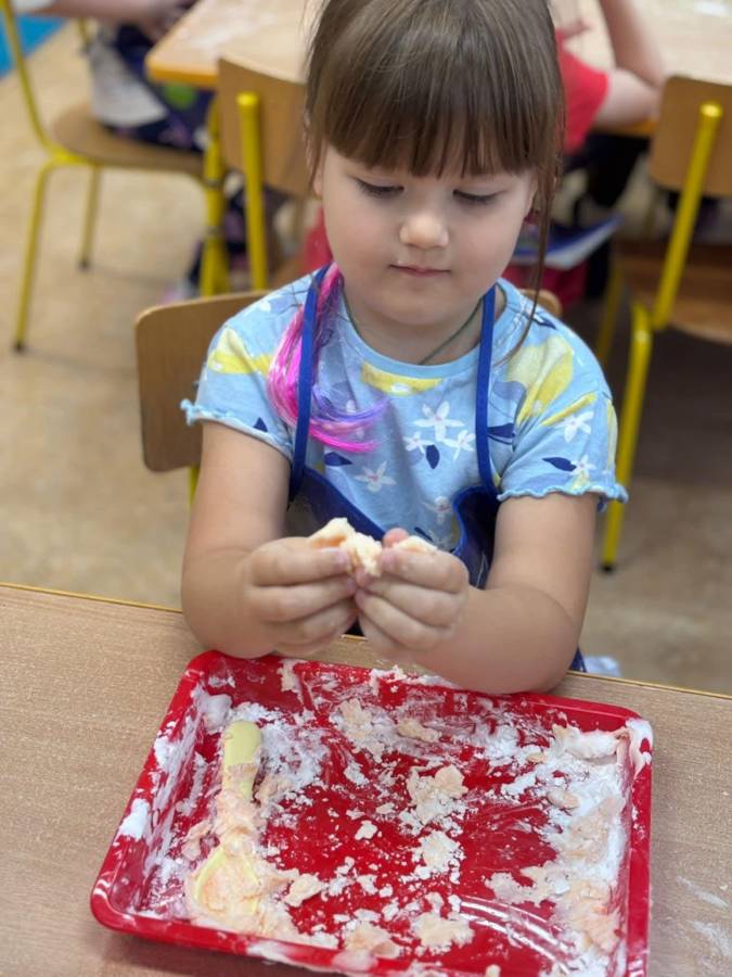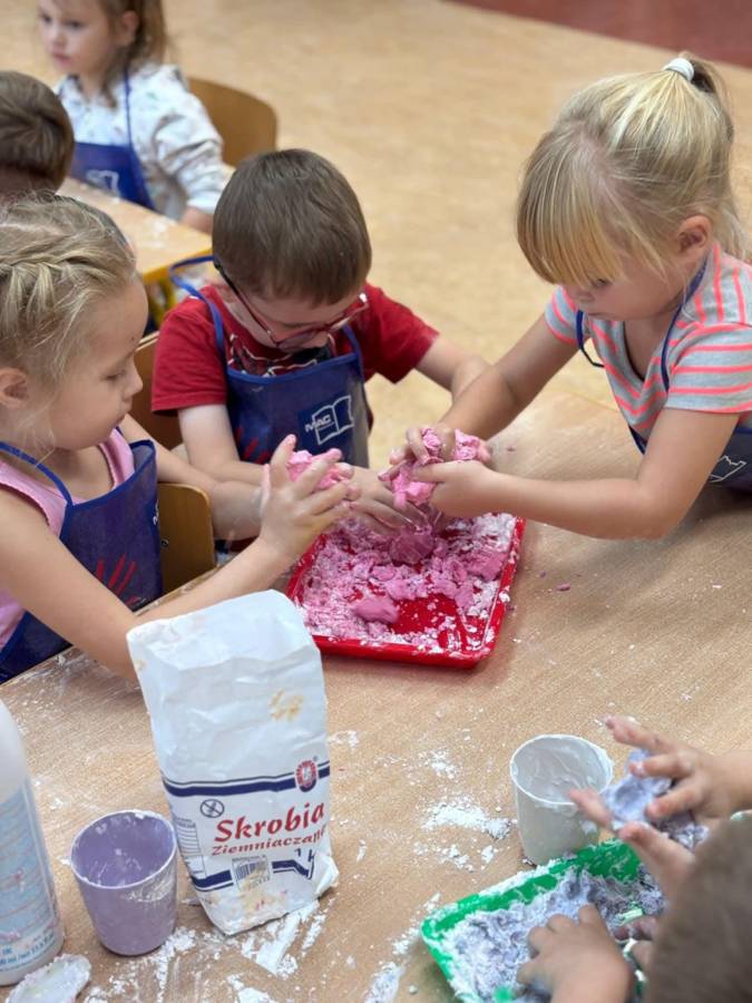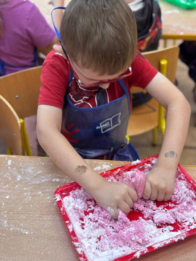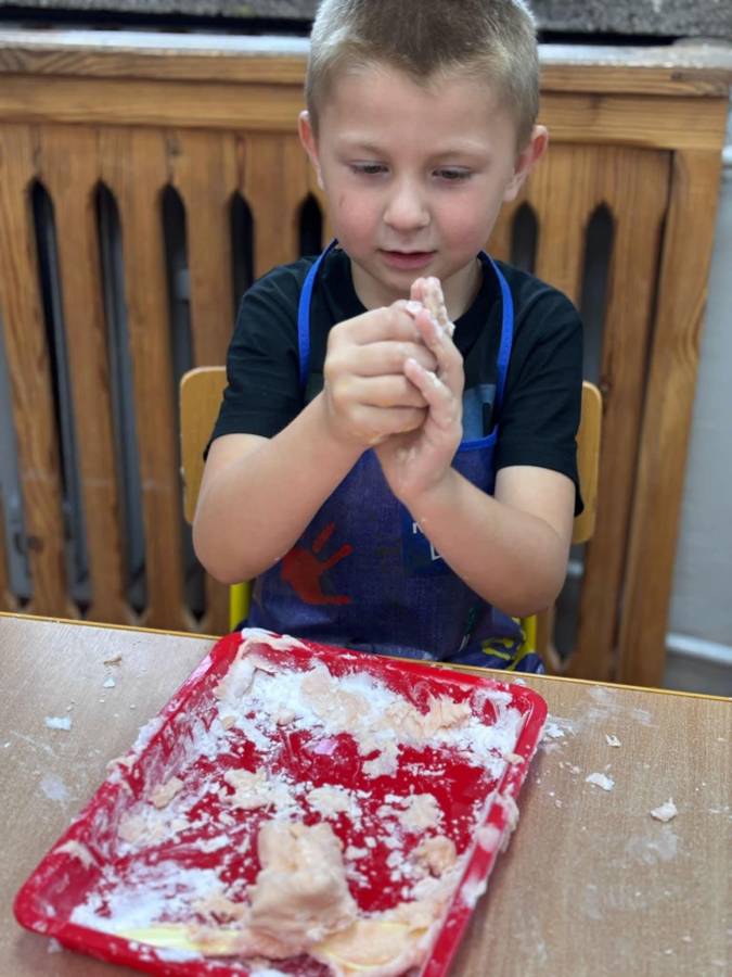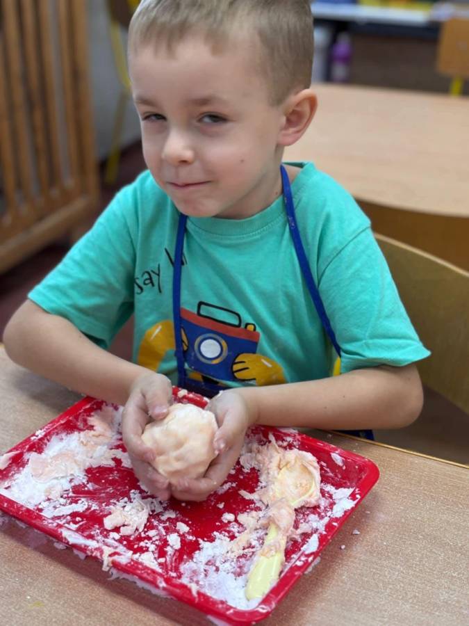 Wspólnie stworzyliśmy kolorową, pachnącą ciastolinę z odżywki, skrobi ziemniaczanej i barwników! Kreatywność 100%, a bałagan 110%.