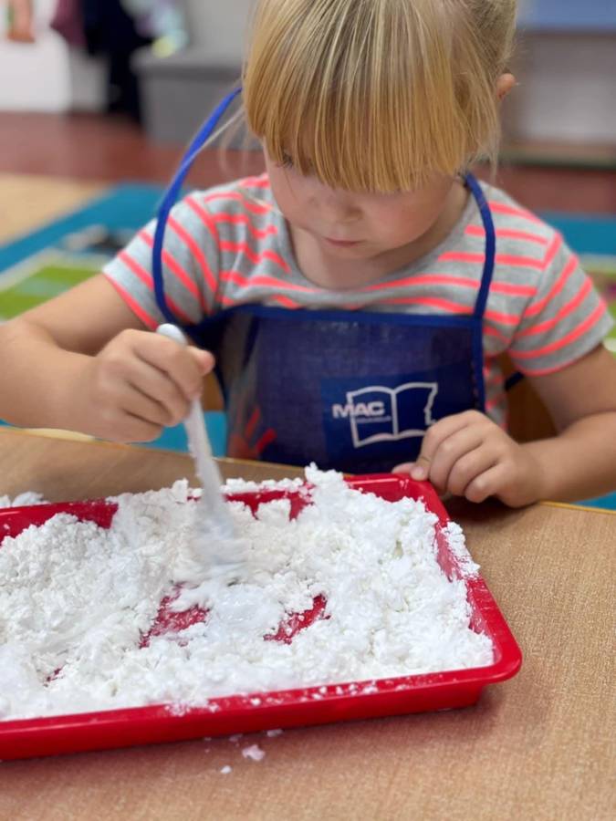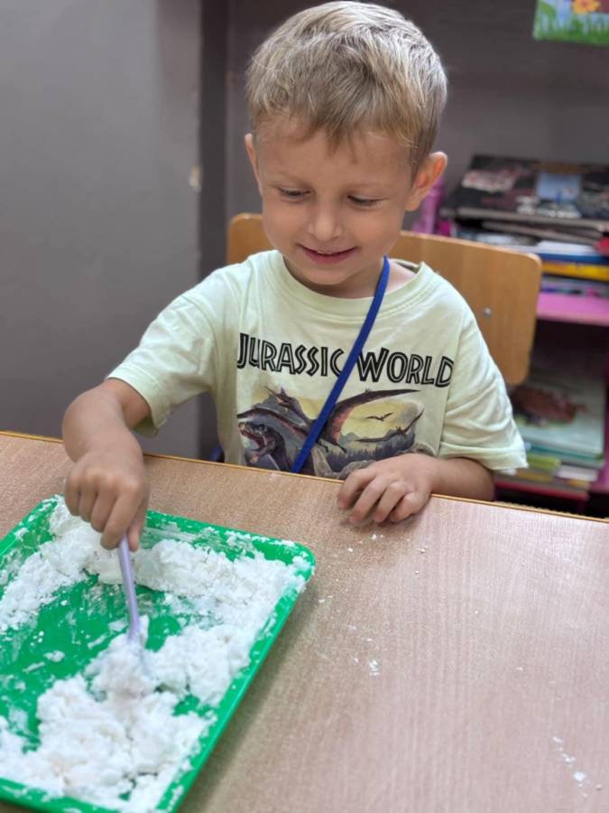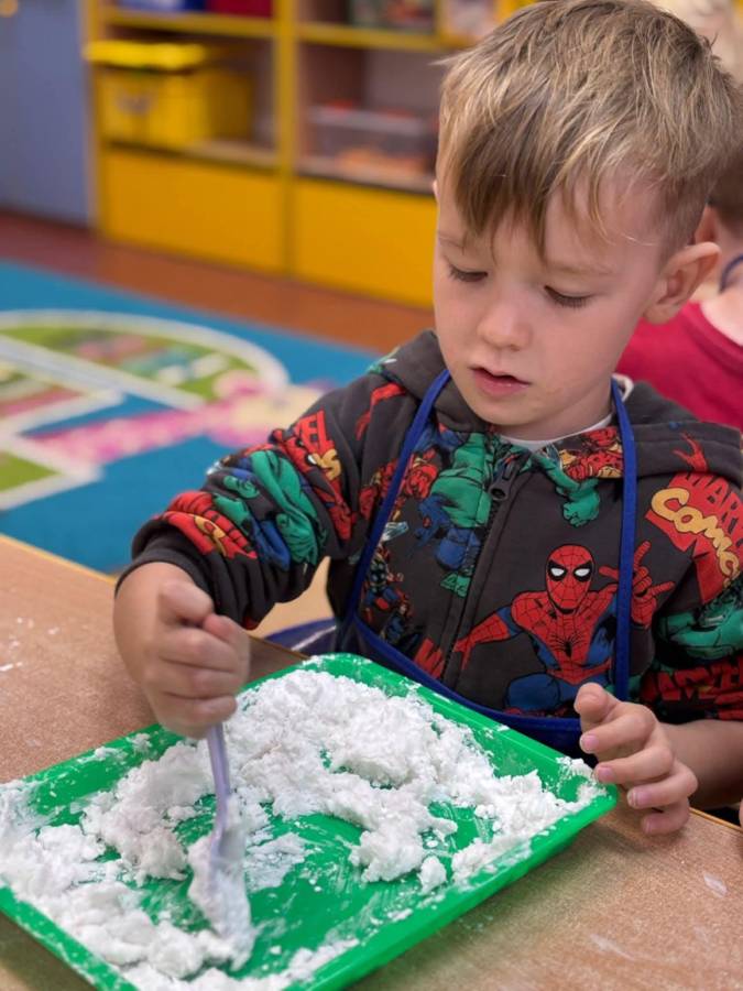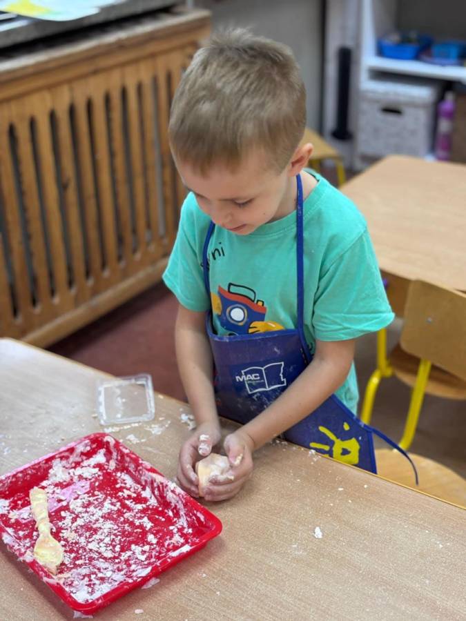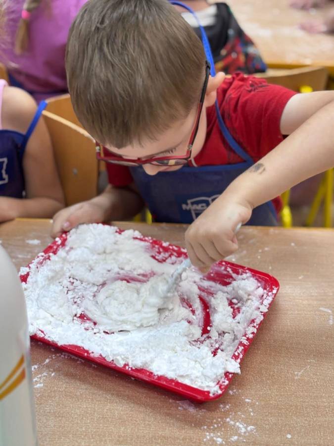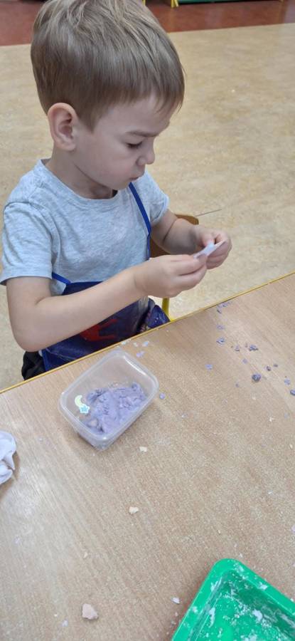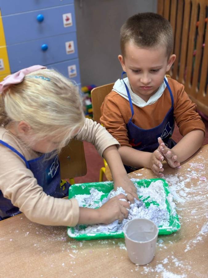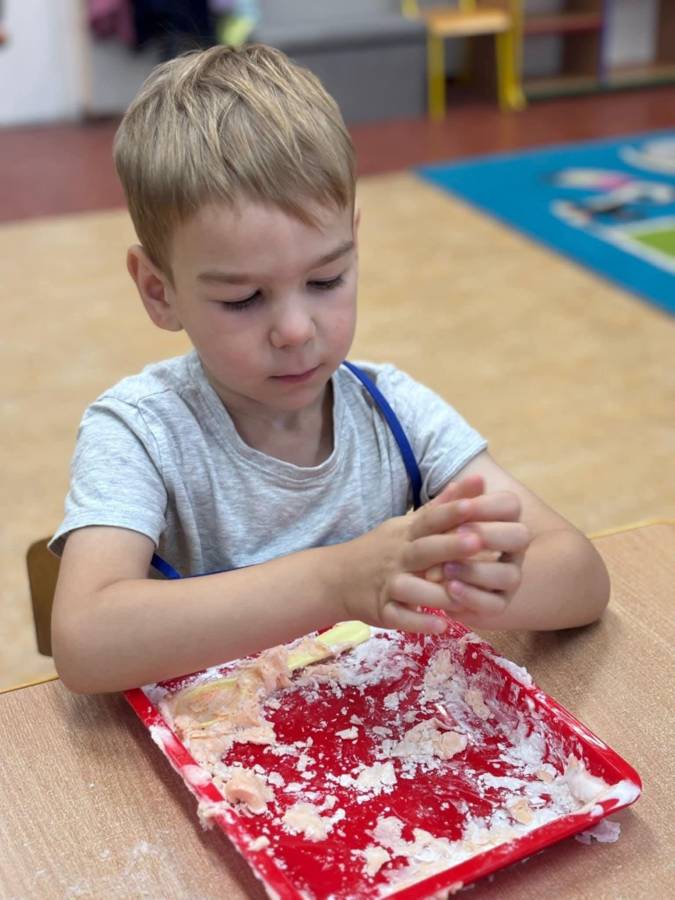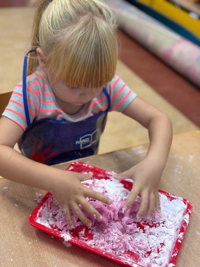 Wspólnie stworzyliśmy kolorową, pachnącą ciastolinę z odżywki, skrobi ziemniaczanej i barwników! Kreatywność 100%, a bałagan 110%.