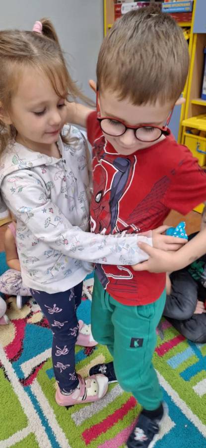 Dziewczynki złożyły chłopcom serdeczne życzenia i wręczyły drobne upominki