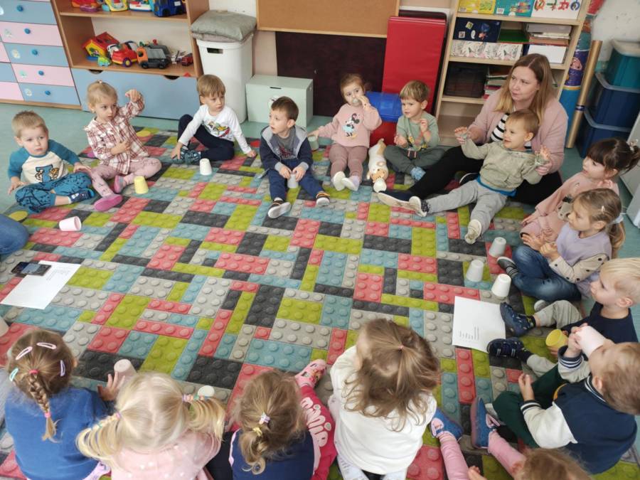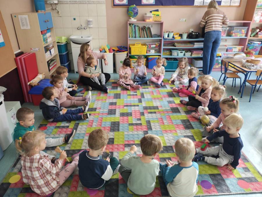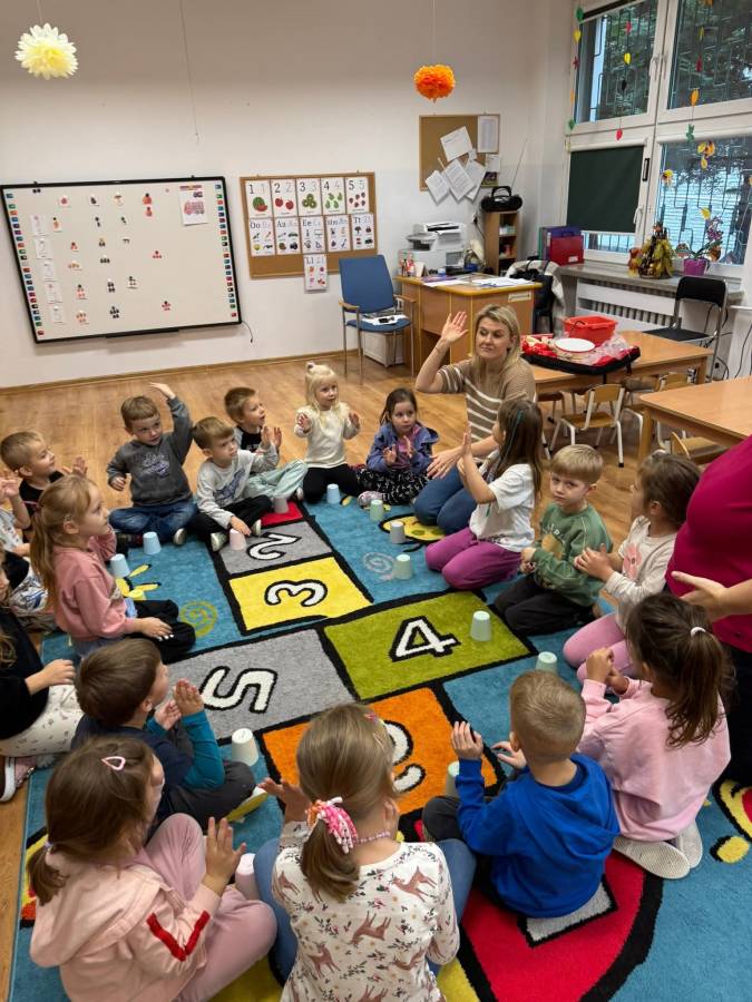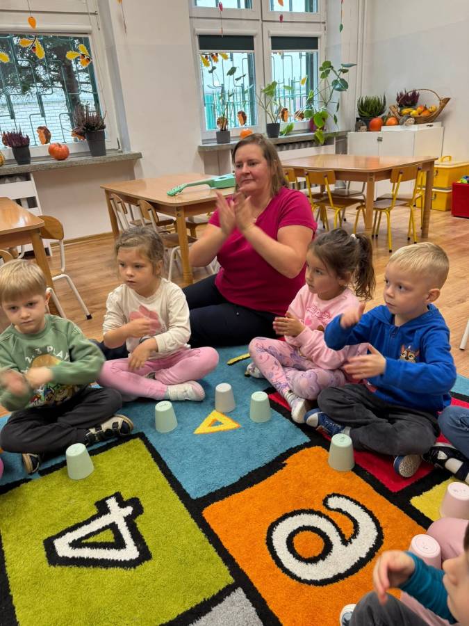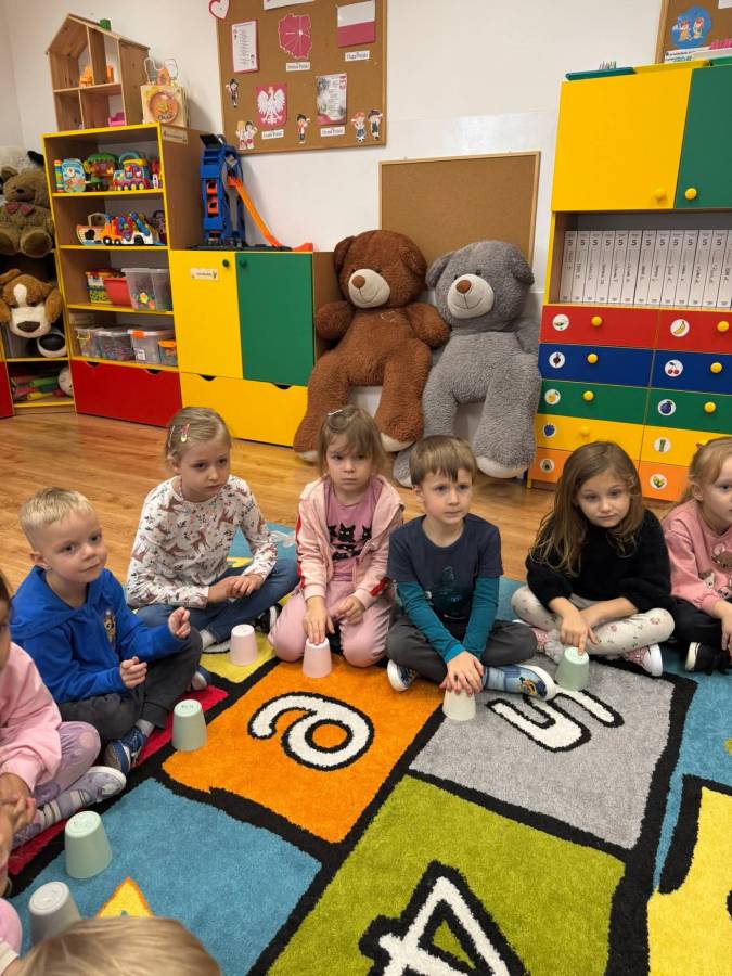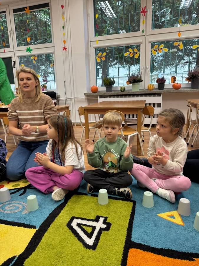 1 października obchodziliśmy Międzynarodowy Dzień Muzyki. Z tej okazji w grupach Ślimaczki i Pszczółki odbyły się wyjątkowe zajęcia logopedyczno-muzyczne. Dzieci rozpoczęły od ćwiczeń usprawniających aparat mowy, które połączone były z rytmiczną zabawą. Następnie wykonywały różnorodne polecenia w rytm muzyki, rozwijając przy tym słuch i koordynację ruchową. Mali artyści stworzyli także własne orkiestry, wykorzystując instrumenty perkusyjne. Na zakończenie zajęć dzieci zaprezentowały układ ruchowy z rekwizytami, poruszając się zgodnie z muzyką. Było radośnie, twórczo i bardzo muzycznie!