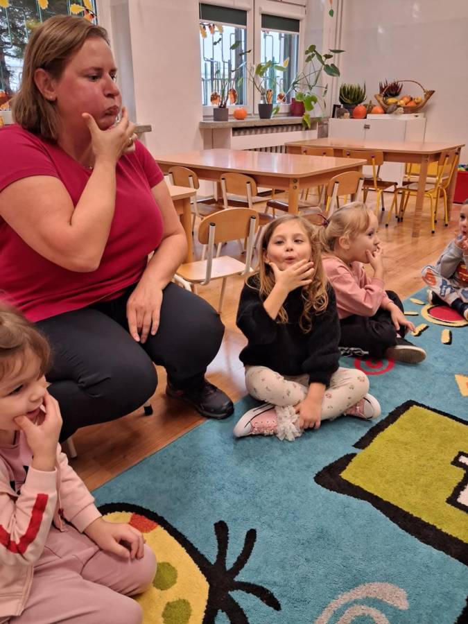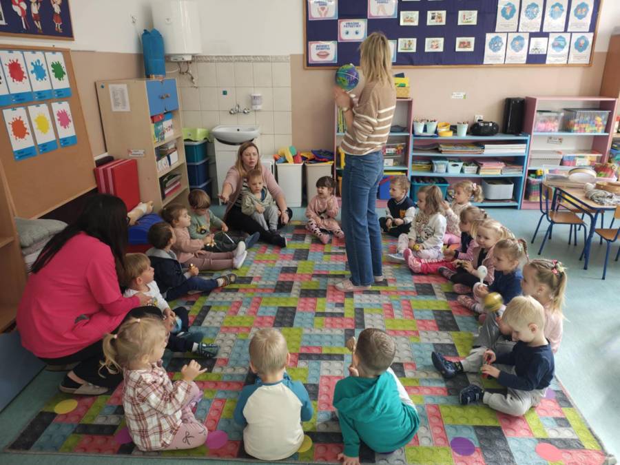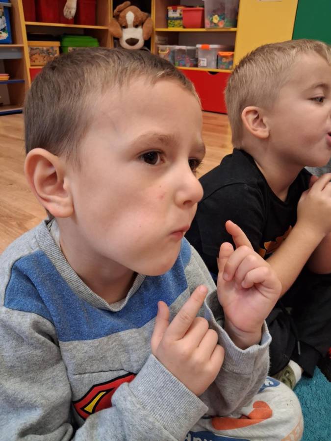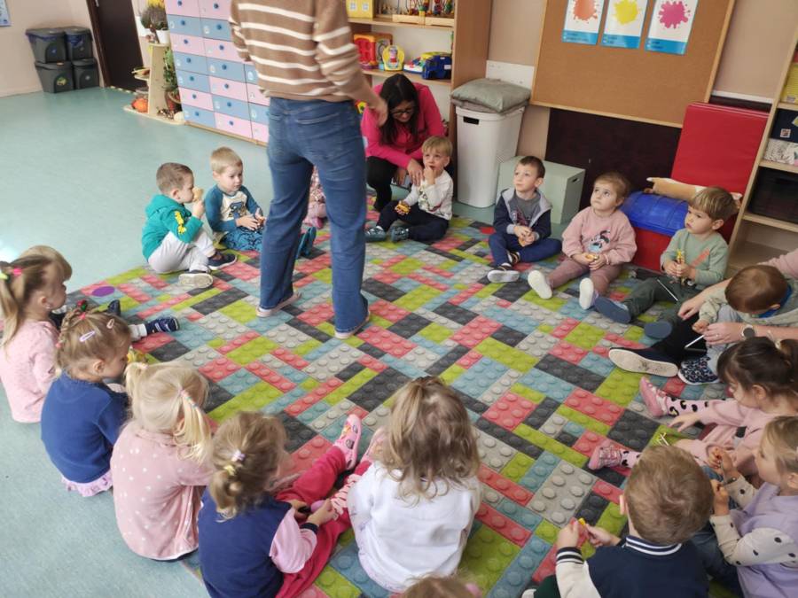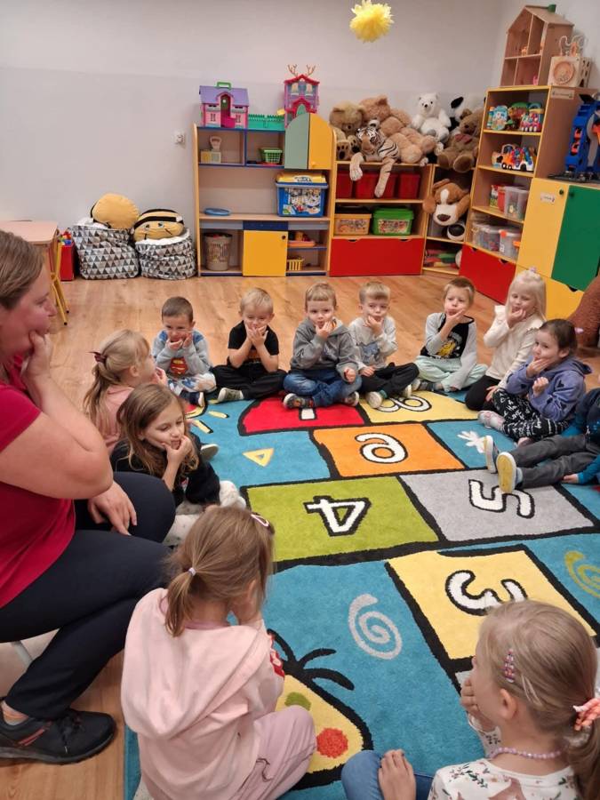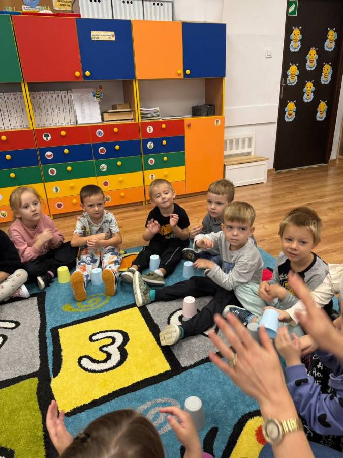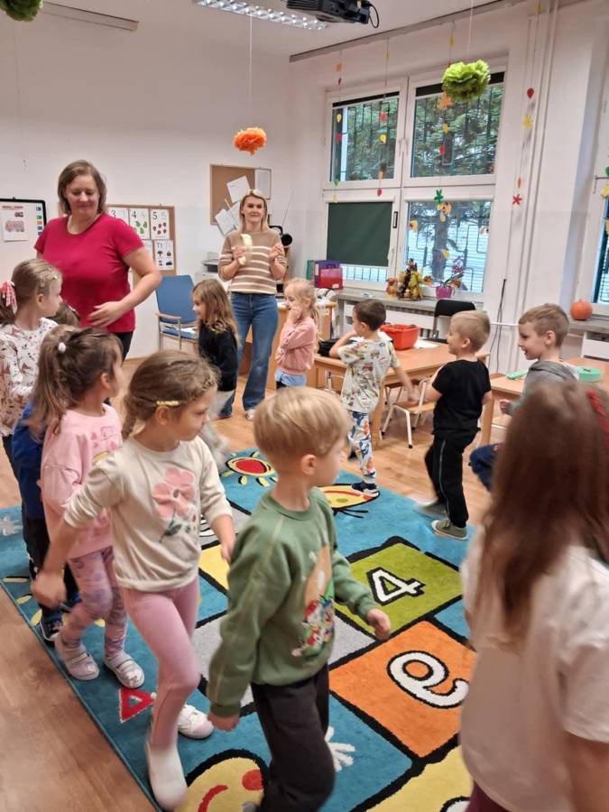 1 października obchodziliśmy Międzynarodowy Dzień Muzyki. Z tej okazji w grupach Ślimaczki i Pszczółki odbyły się wyjątkowe zajęcia logopedyczno-muzyczne. Dzieci rozpoczęły od ćwiczeń usprawniających aparat mowy, które połączone były z rytmiczną zabawą. Następnie wykonywały różnorodne polecenia w rytm muzyki, rozwijając przy tym słuch i koordynację ruchową. Mali artyści stworzyli także własne orkiestry, wykorzystując instrumenty perkusyjne. Na zakończenie zajęć dzieci zaprezentowały układ ruchowy z rekwizytami, poruszając się zgodnie z muzyką. Było radośnie, twórczo i bardzo muzycznie!