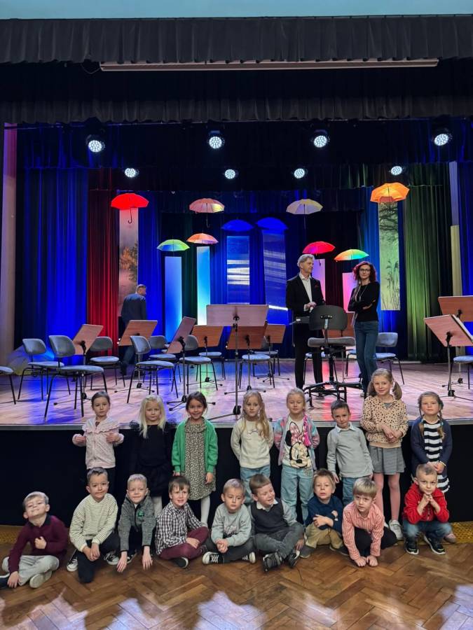 Muzyczna przygoda naszych przedszkolaków! W piątek Kropeczki, Jagódki, Pszczółki i Biedronki miały niezwykłą okazję uczestniczyć w koncercie Radomskiej Orkiestry Kameralnej. Dzieci z zachwytem słuchały pięknych dźwięków instrumentów i z zainteresowaniem obserwowały muzyków podczas występu.