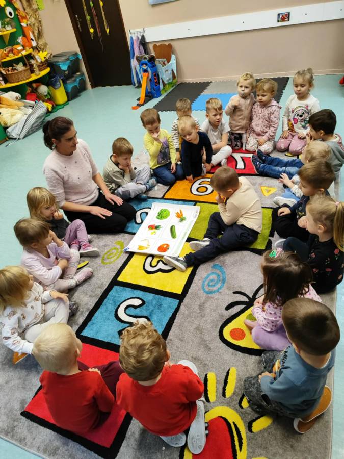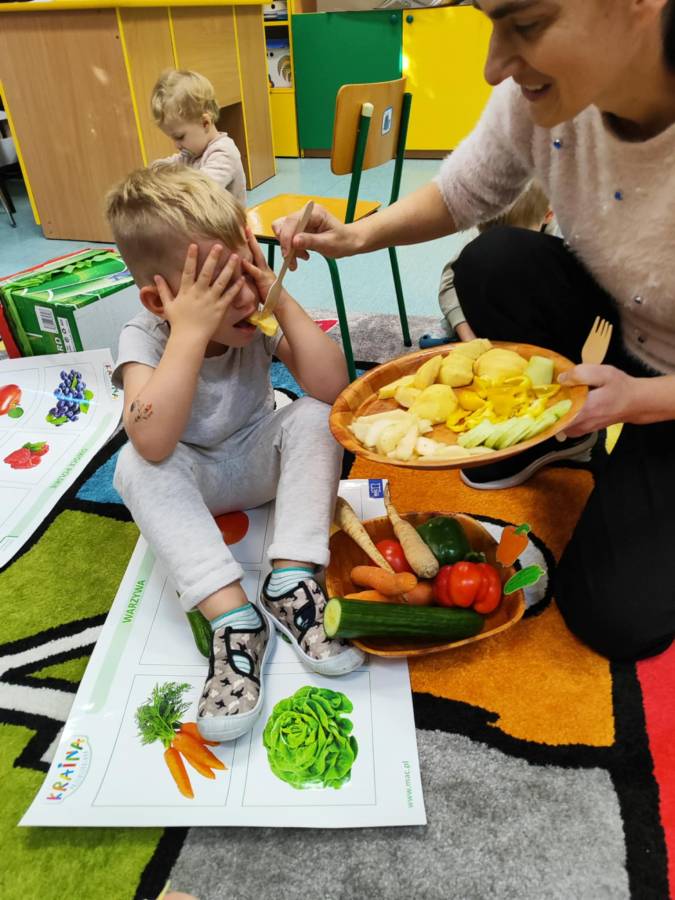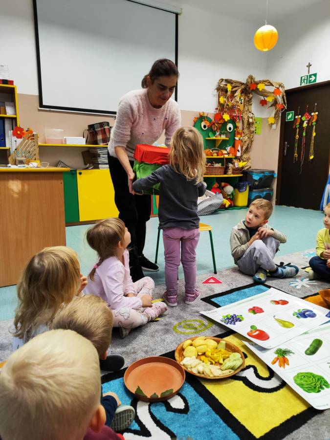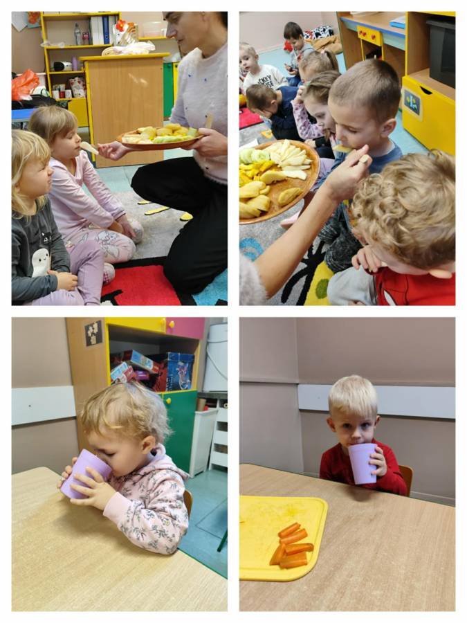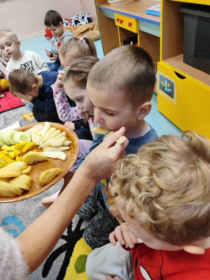 Zajęcia z projektu "Postaw na wartości - postaw na zdrowie"-ogólnopolski projekt edukacyjny krąg lV " - warzywa i owoce mają super moce. Dzieci z grupy Jagódek nazywały i próbowały warzywa i owoce oraz wspólnie robiły sok, który wyszedł pyszny i miał w sobie super moc.