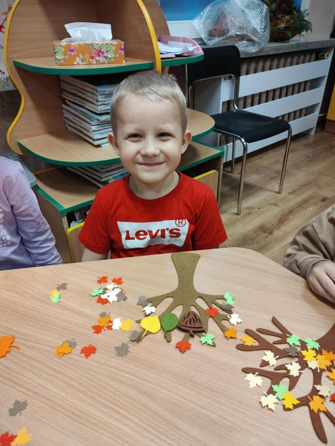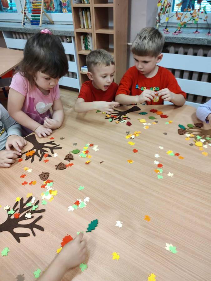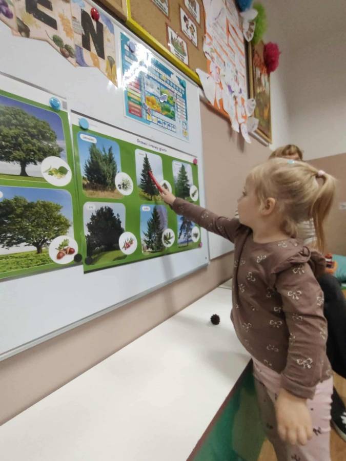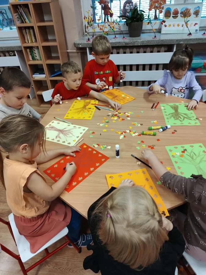 Motylki uczą się o roli drzew w przyrodzie, wykonują prace plastyczne, aby rozwijać świadomość ekologiczną i poczucie odpowiedzialności za otaczającą przyrodę.
