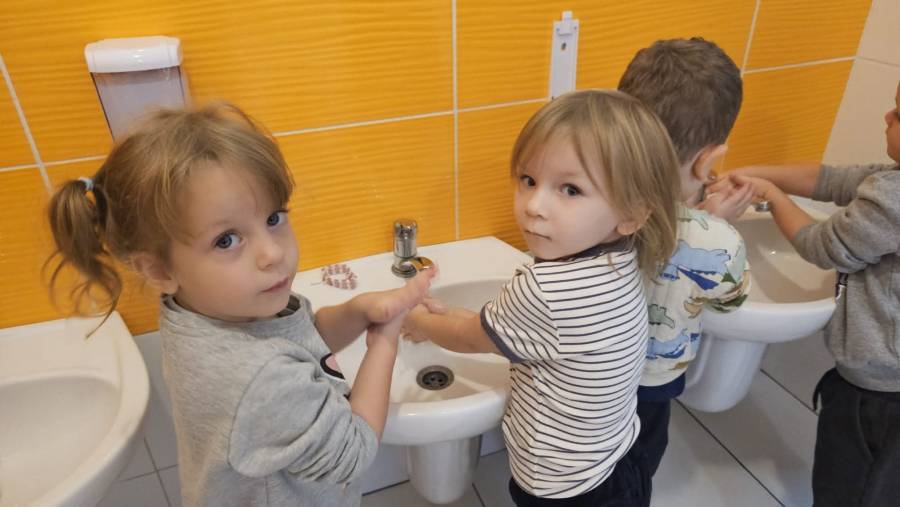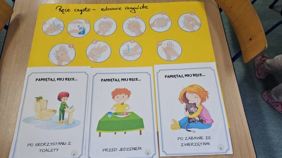 Ślimaczki już wiedzą jak skutecznie myć ręce (projekt Postaw na wartości - zadanie "Ręce czyste - zdrowie oczywiste" - wykonanie plakatu, ćwiczenia praktyczne).