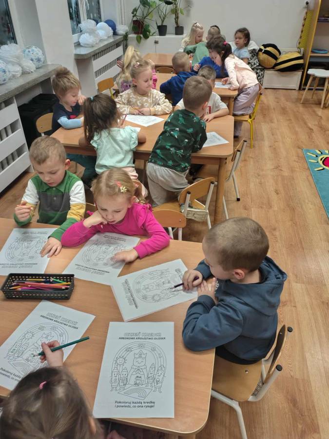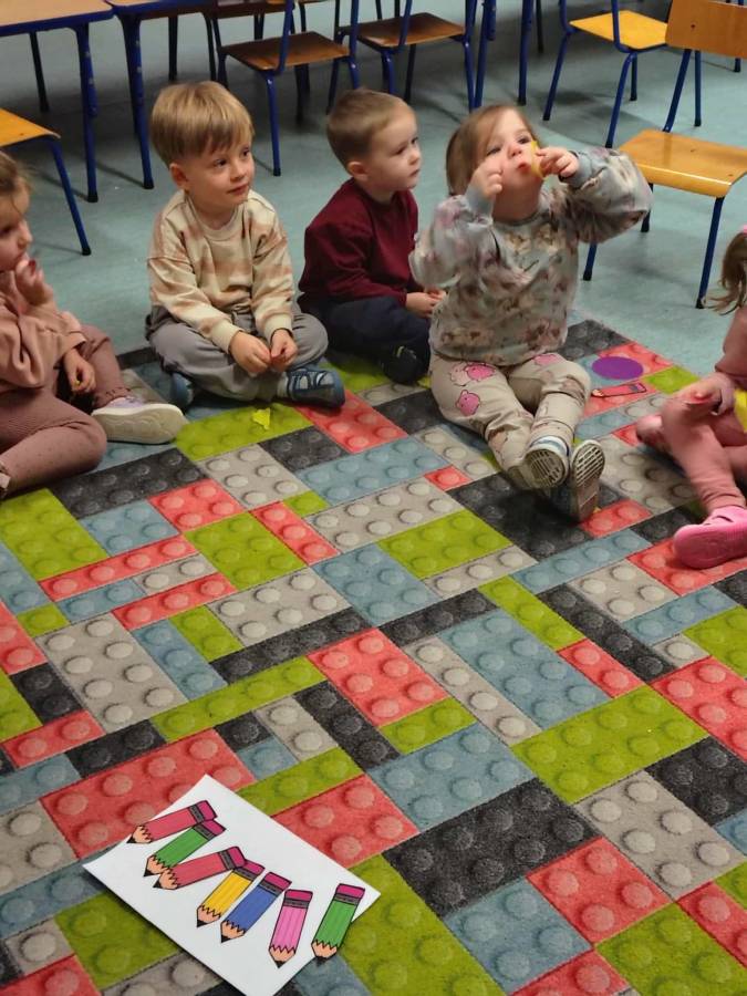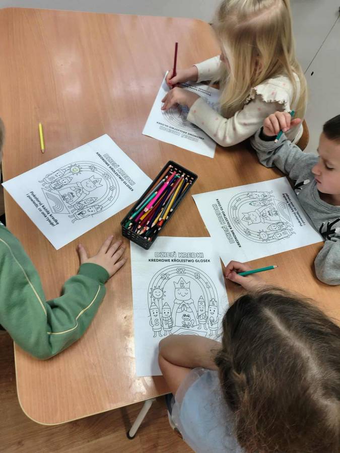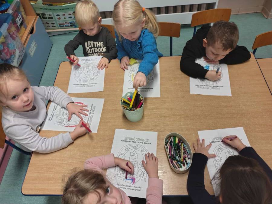 Wspólnie świętowaliśmy Dzień Kredki. Poznaliśmy ciekawości o kredkach, szukaliśmy ich ukrytych znaczeń, rozwiązywaliśmy zagadki, kolorowaliśmy i śpiewaliśmy piosenki o bohaterkach dnia.