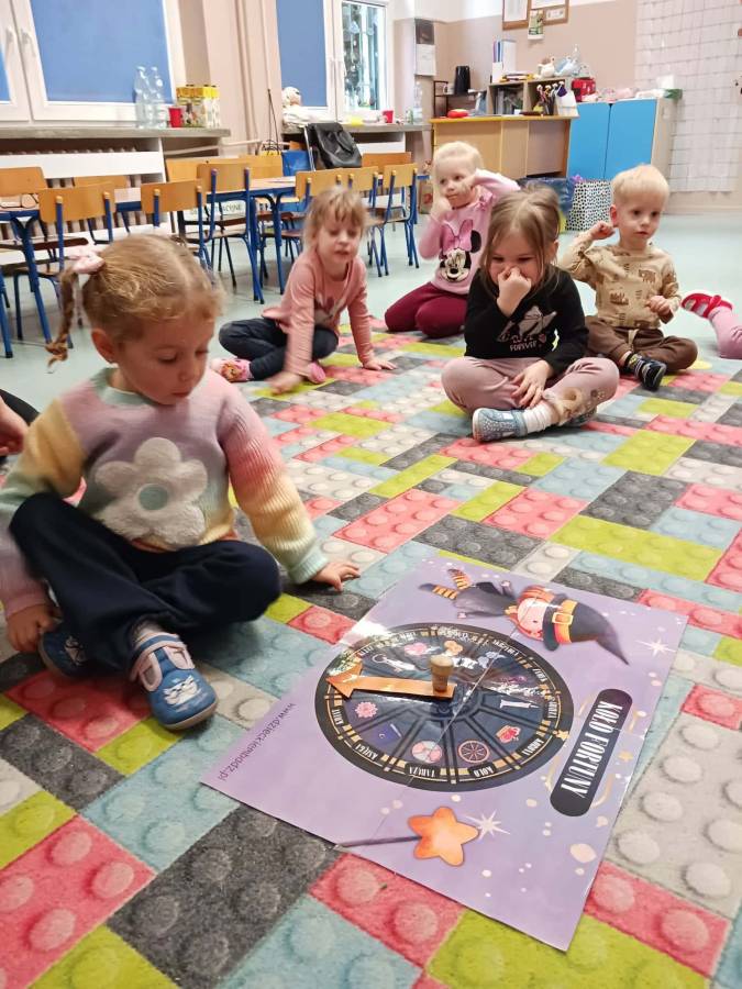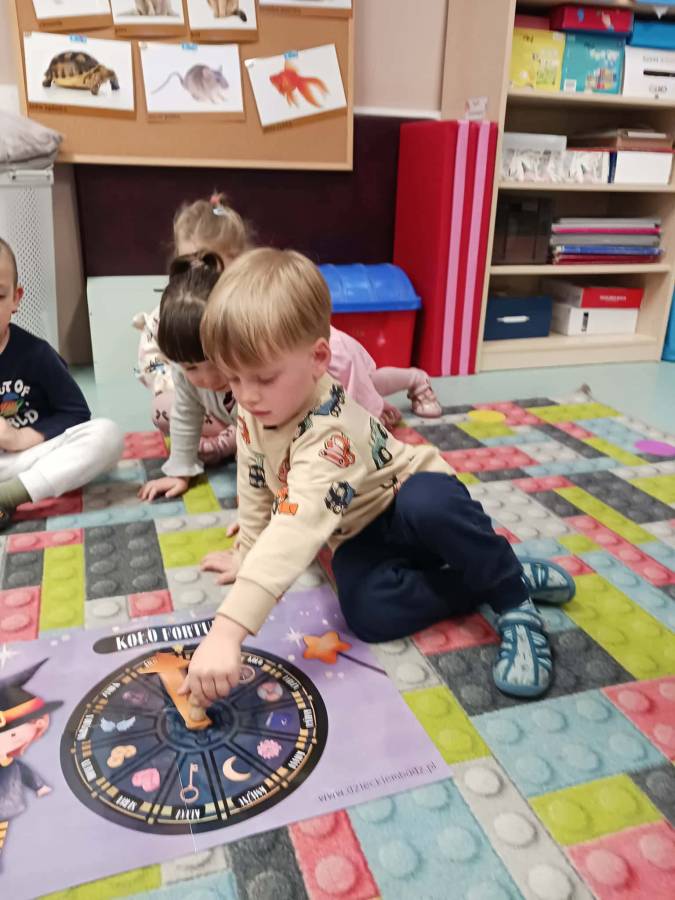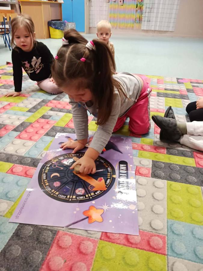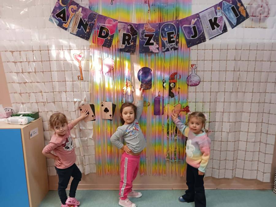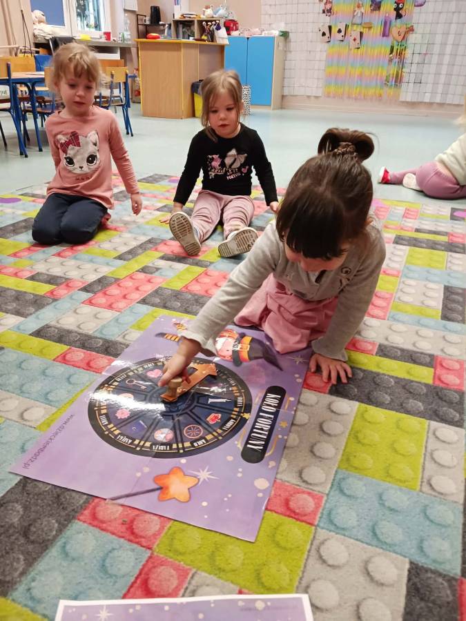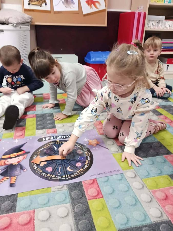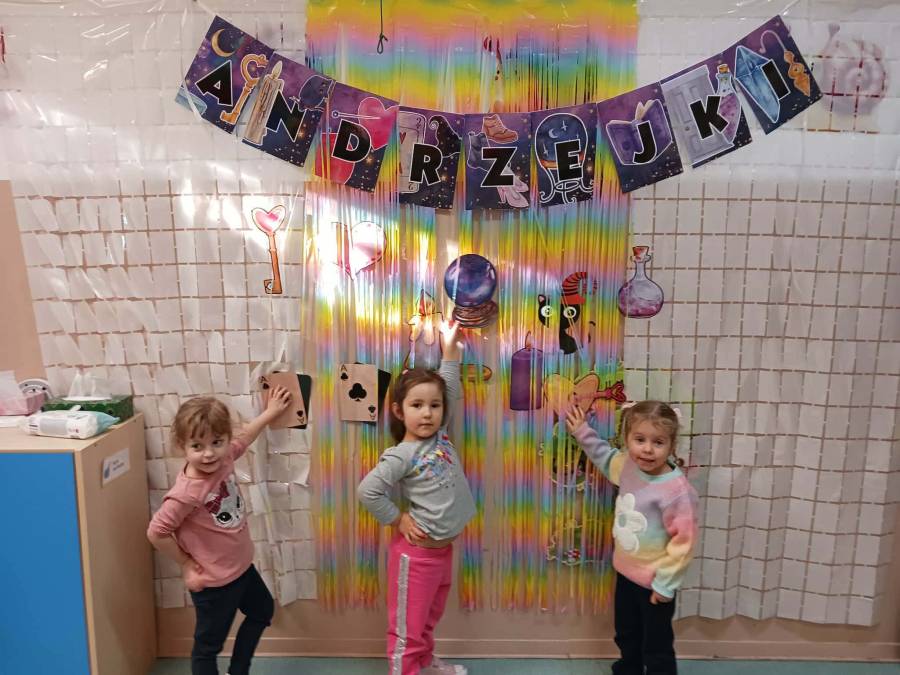 Było wróżenie z butów, który bucik przekroczy próg wejścia do sali, losowanie zawodów które być może będą wykonywać w przyszłości oraz Magiczne Koło Fortuny z różnymi symbolami i znaczeniami.