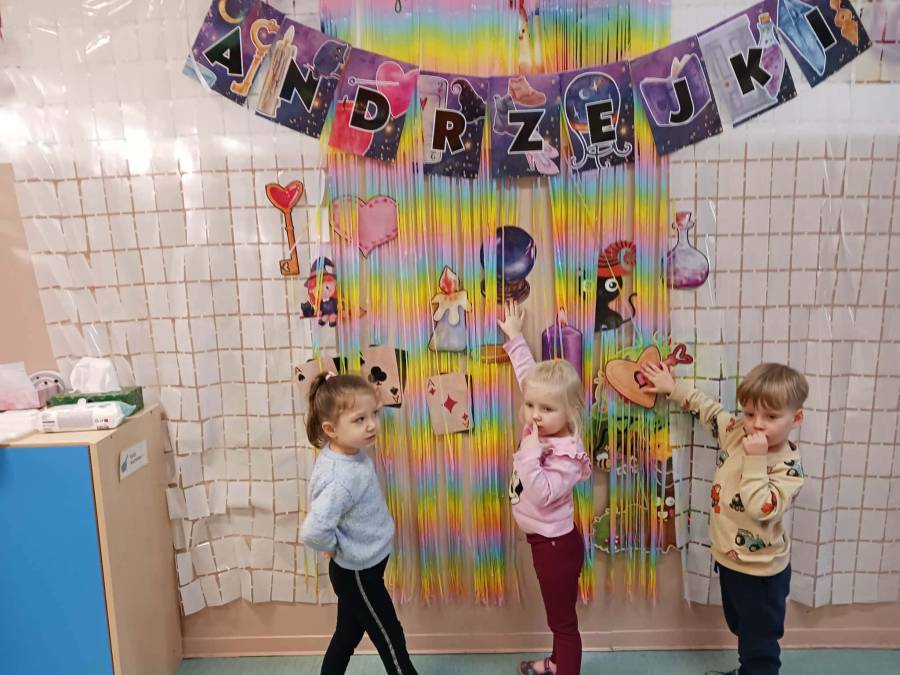 Andrzejkowe czary mary. Dzieci z grupy Ślimaczki uczestniczyły w różnych zabawach Andrzejkowych