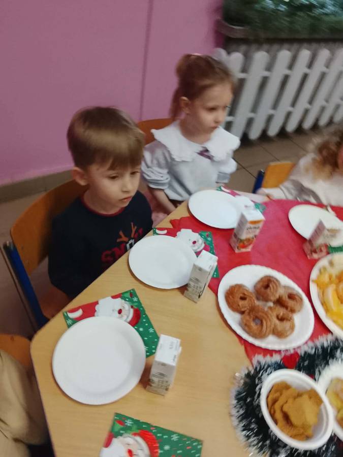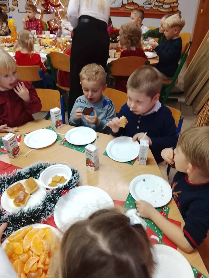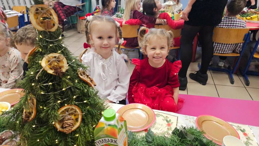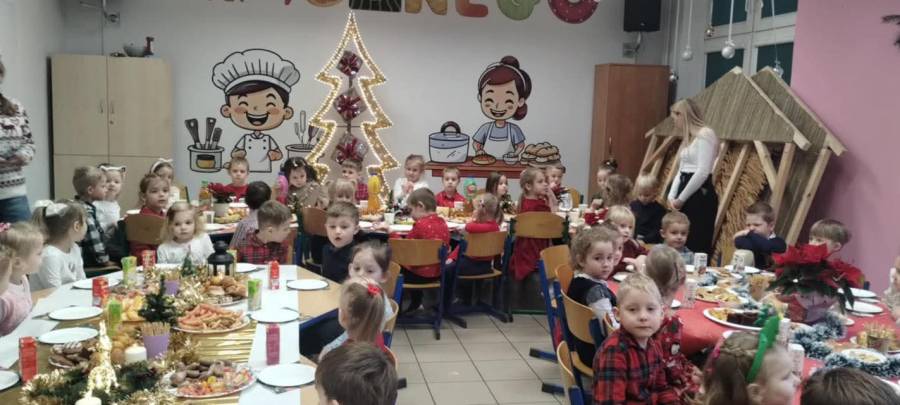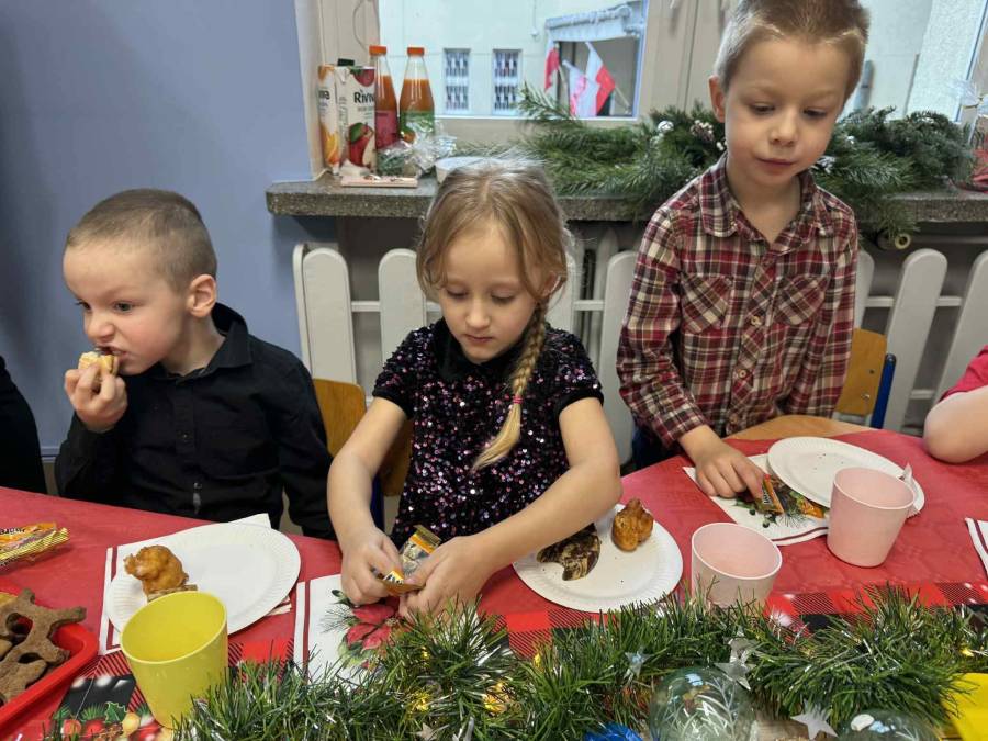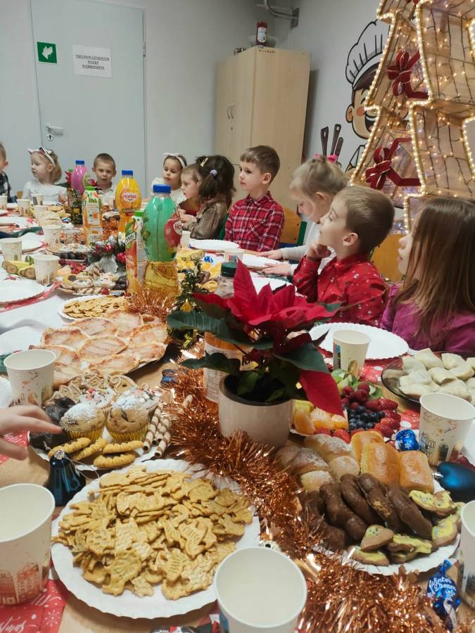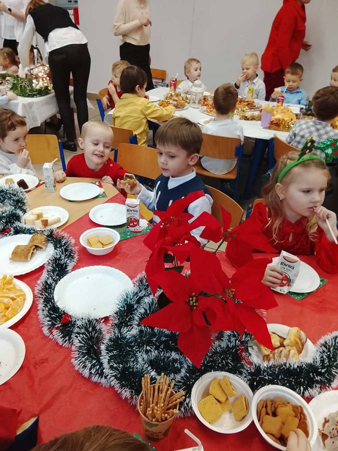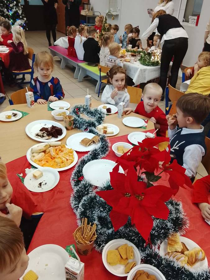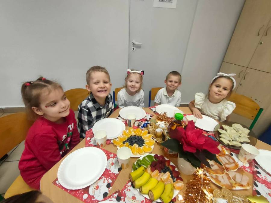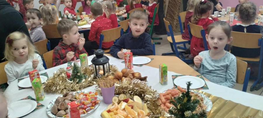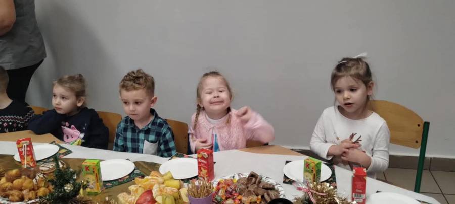 Dziś grupy Ślimaczki, Jagódki, Kropeczki, Motylki i Pszczółki spotkały się przy wigilijnym stole.