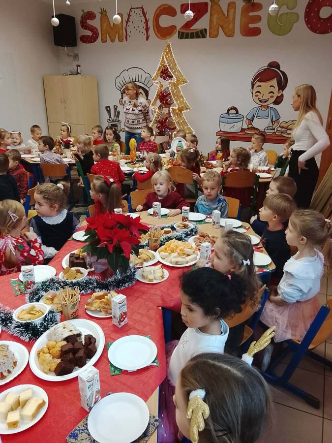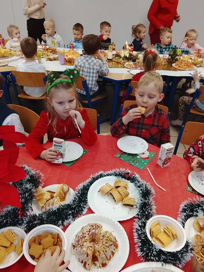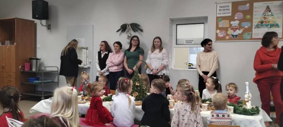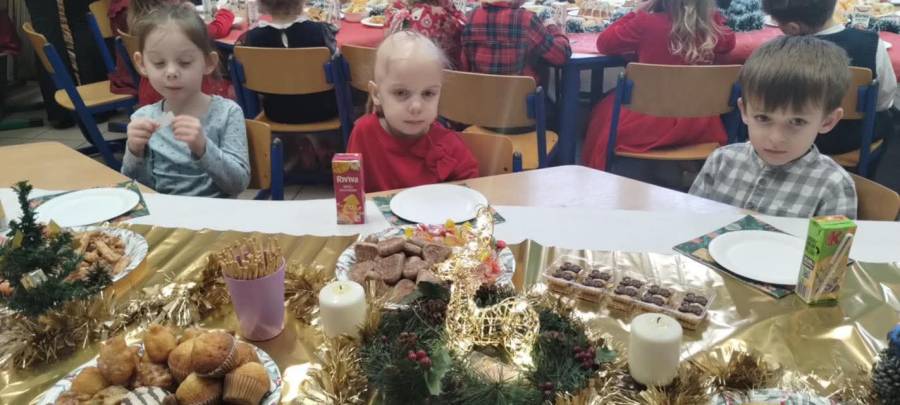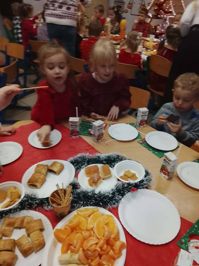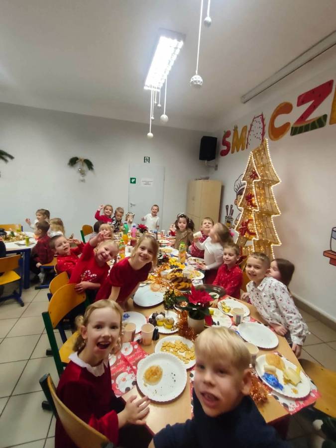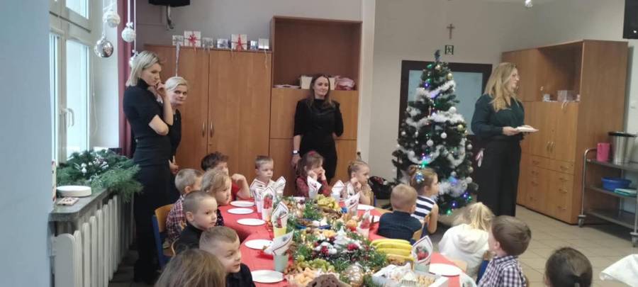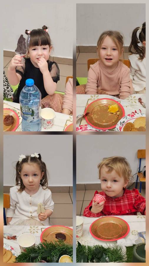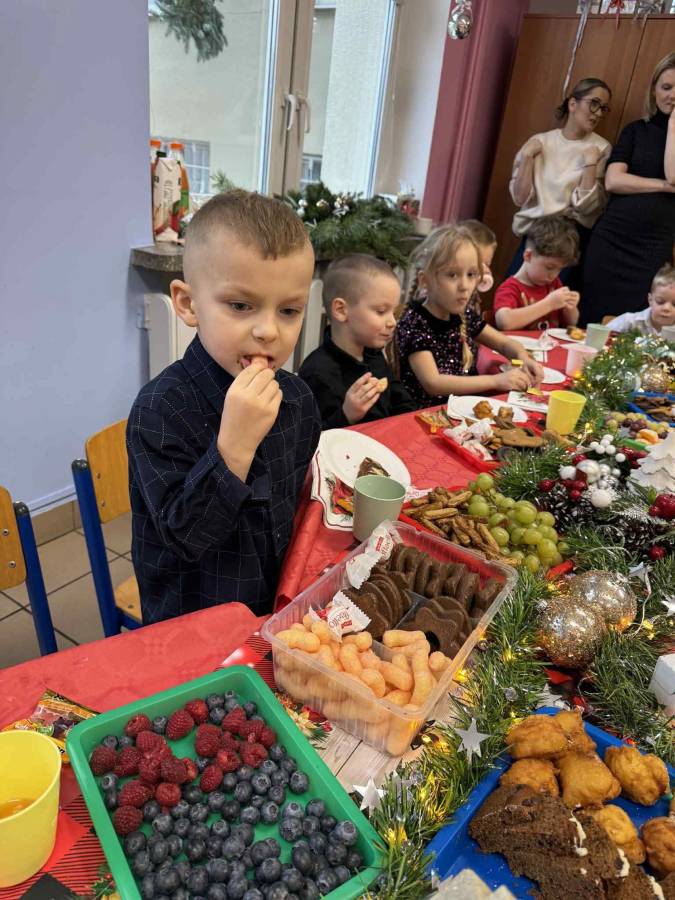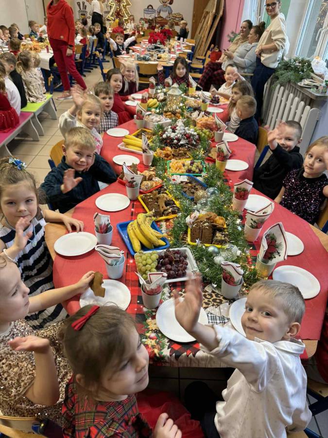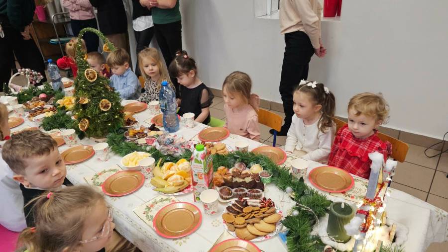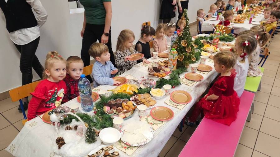 Dziś grupy Ślimaczki, Jagódki, Kropeczki, Motylki i Pszczółki spotkały się przy wigilijnym stole.