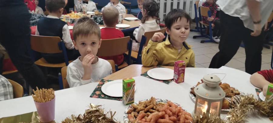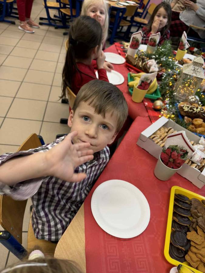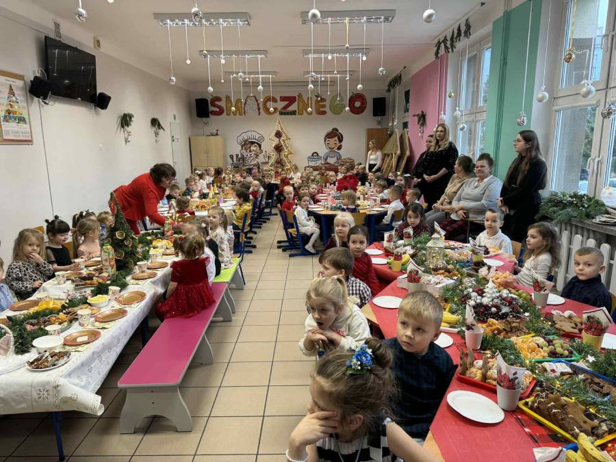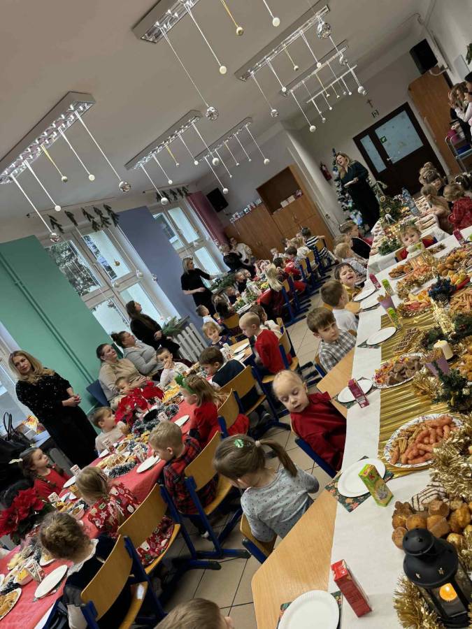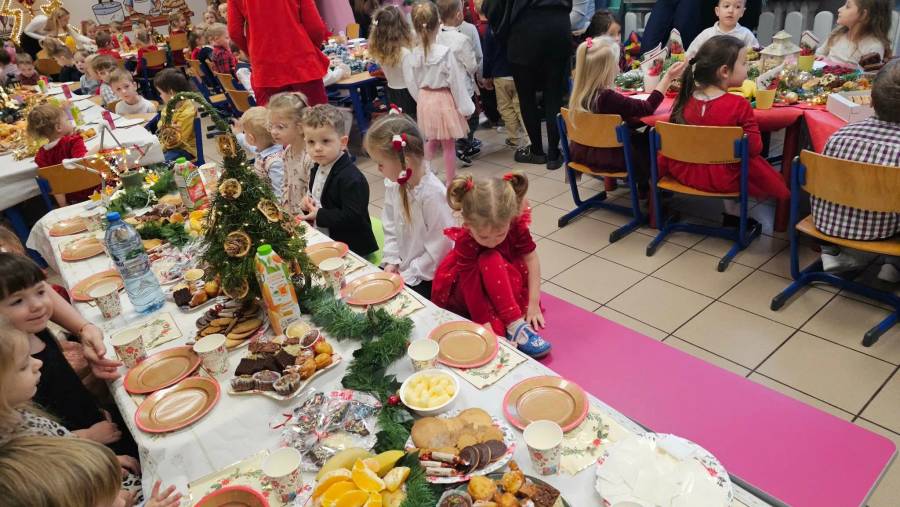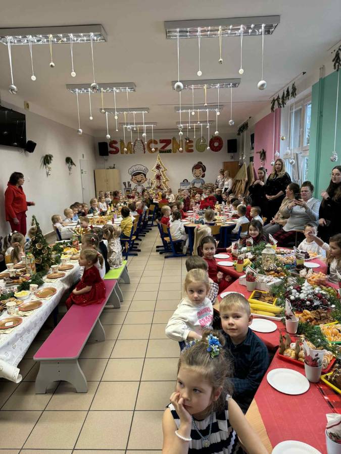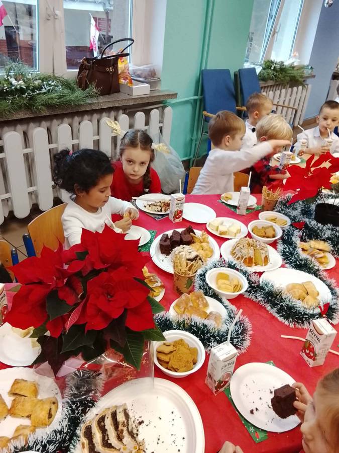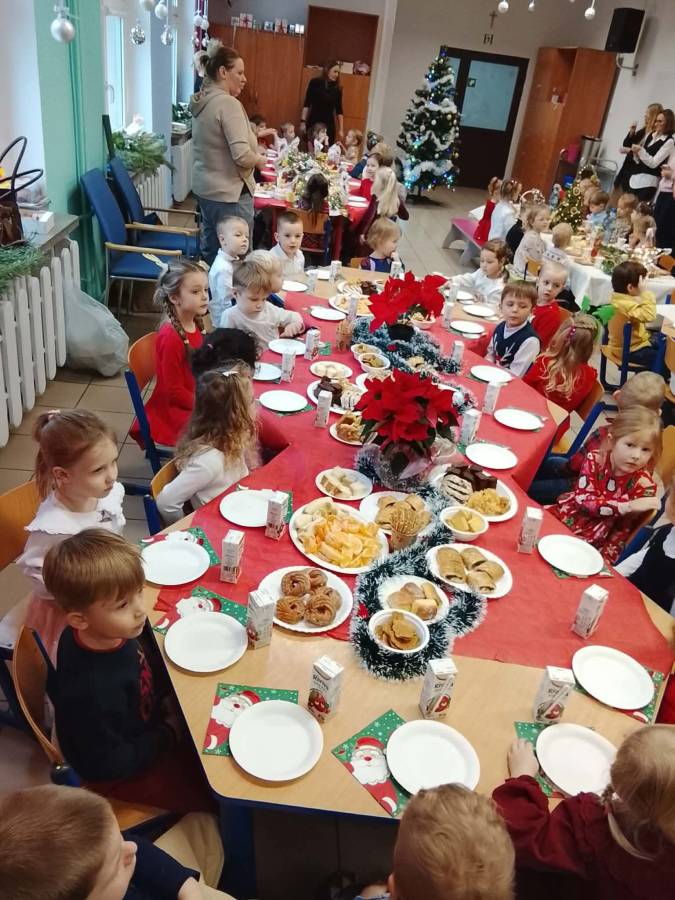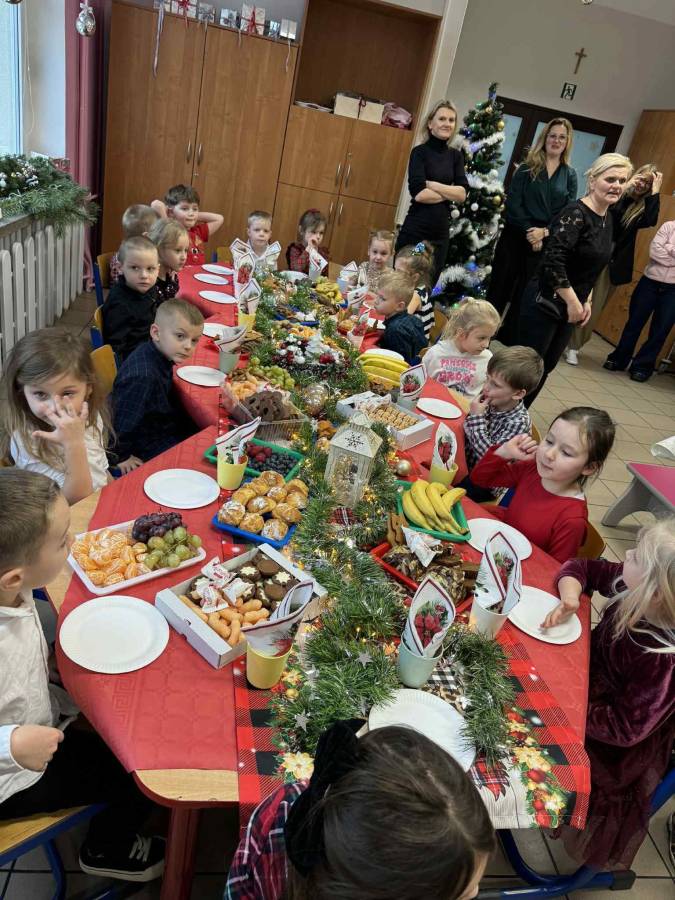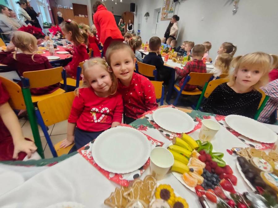 Dziś grupy Ślimaczki, Jagódki, Kropeczki, Motylki i Pszczółki spotkały się przy wigilijnym stole.