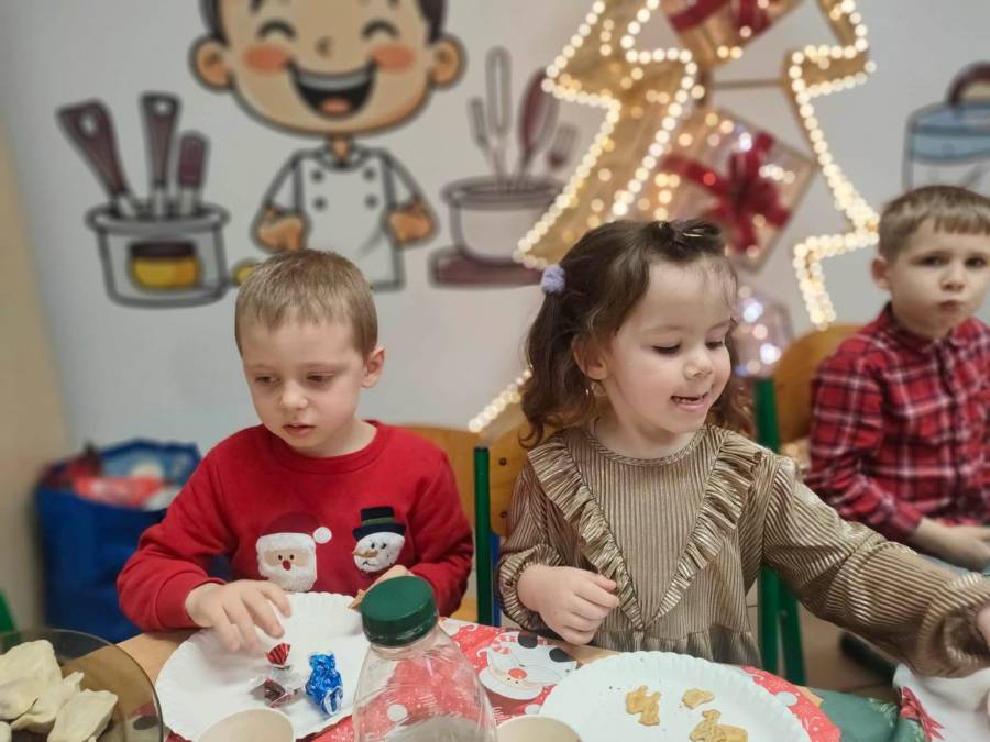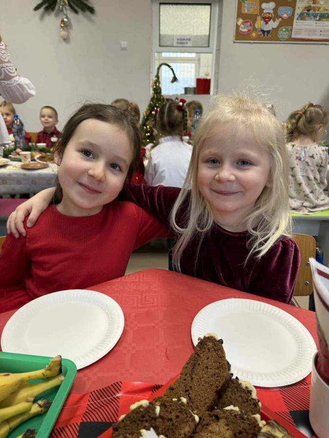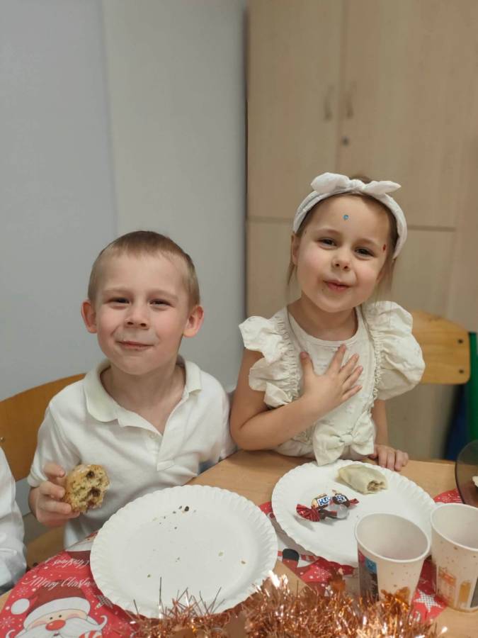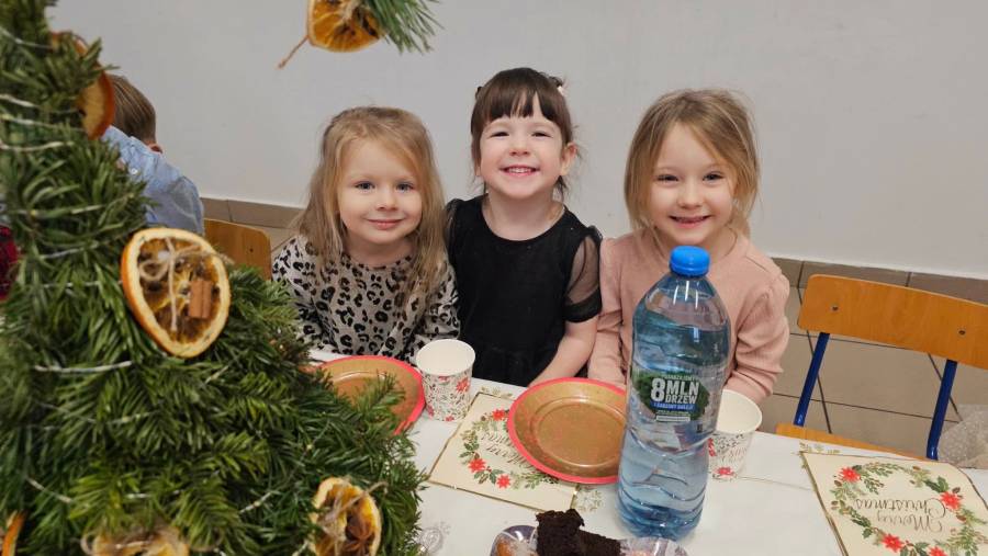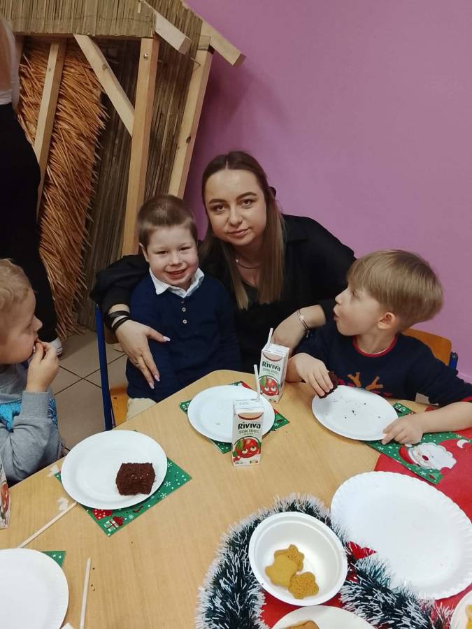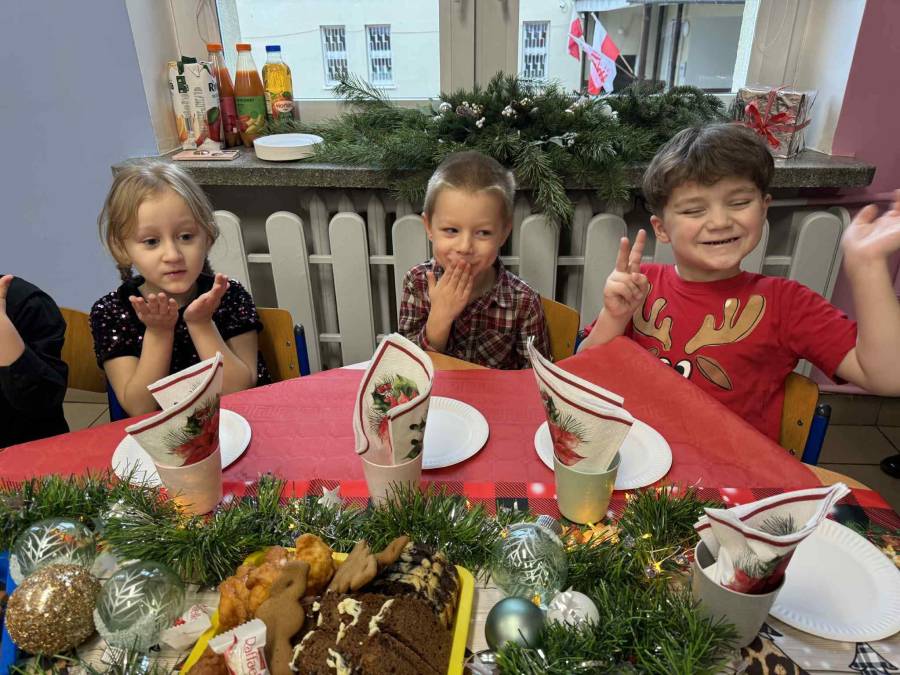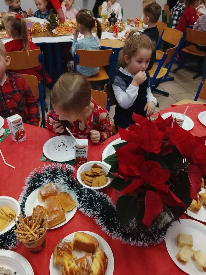 Dziś grupy Ślimaczki, Jagódki, Kropeczki, Motylki i Pszczółki spotkały się przy wigilijnym stole.