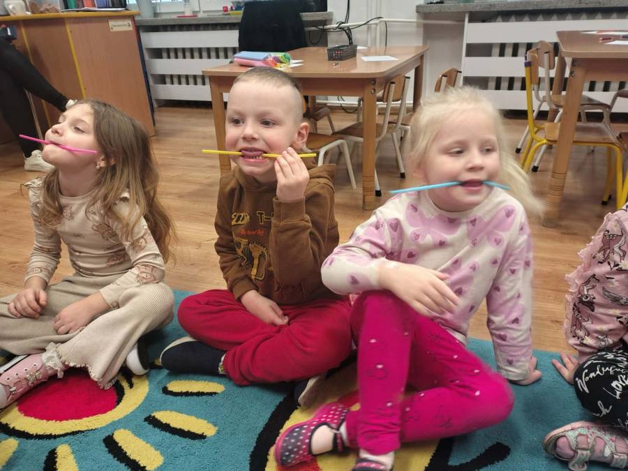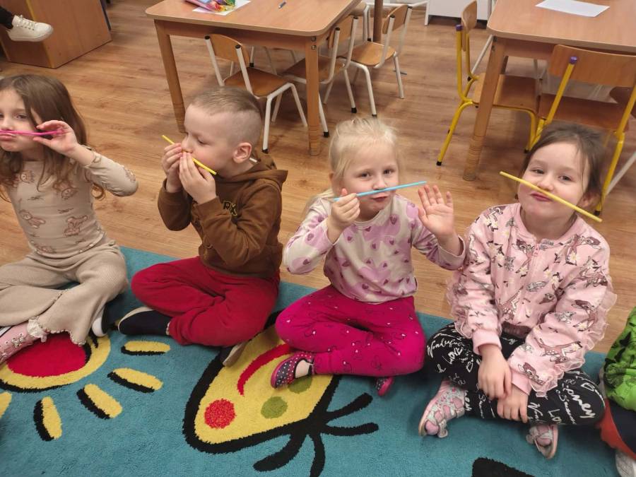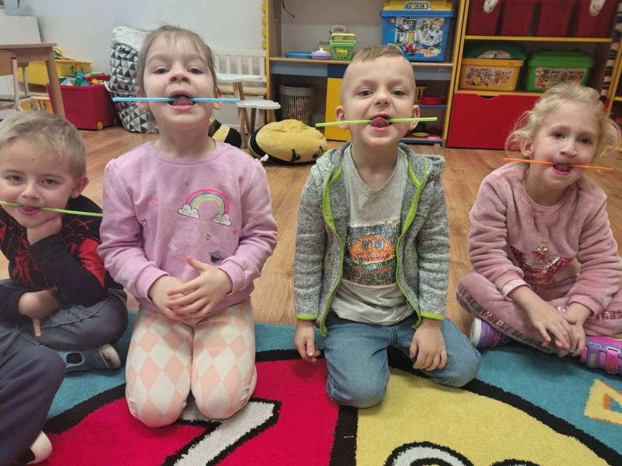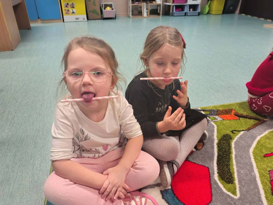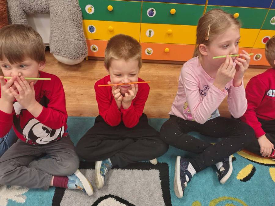 Ślimaczki i Pszczółki obchodziły Dzień Słomki w ramach Projektu Edukacyjnego "Logopedyczny Kalendarz Świąt Nietypowych'. Dzieci wzmacniały mięśnie twarzy, poprawiały tor oddechowy, korygowany pozycję spoczynkową języka. Wszystkie ćwiczenia wykonywały z bohaterką dnia - słomką.