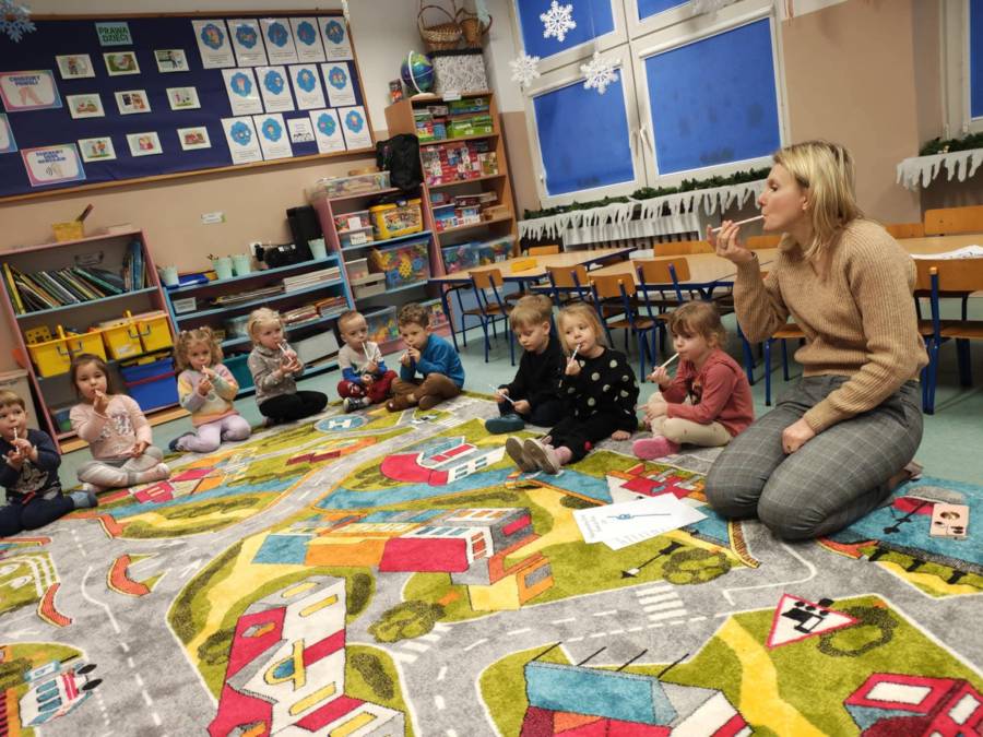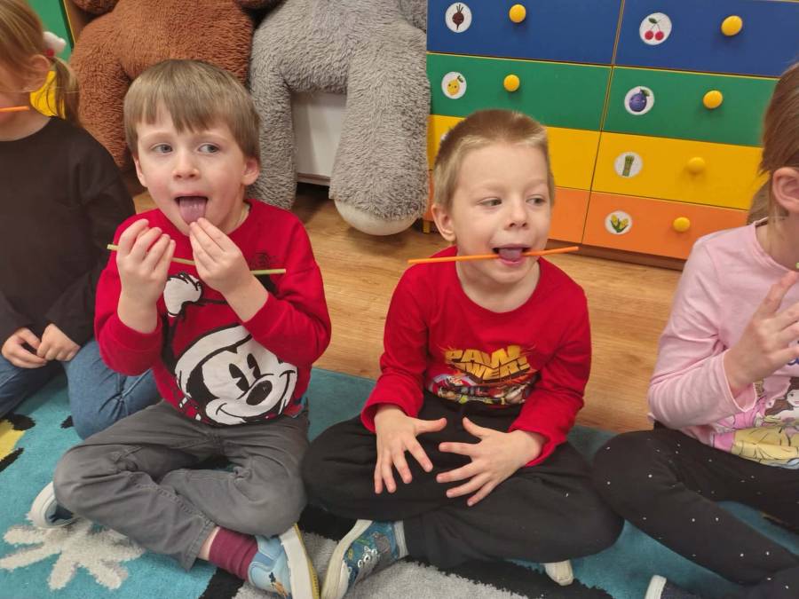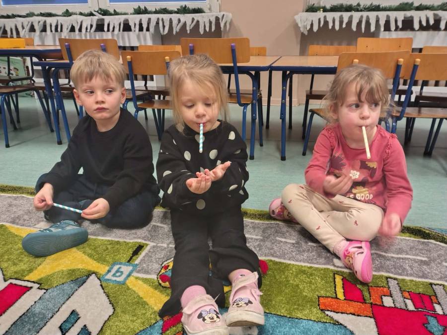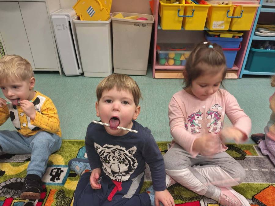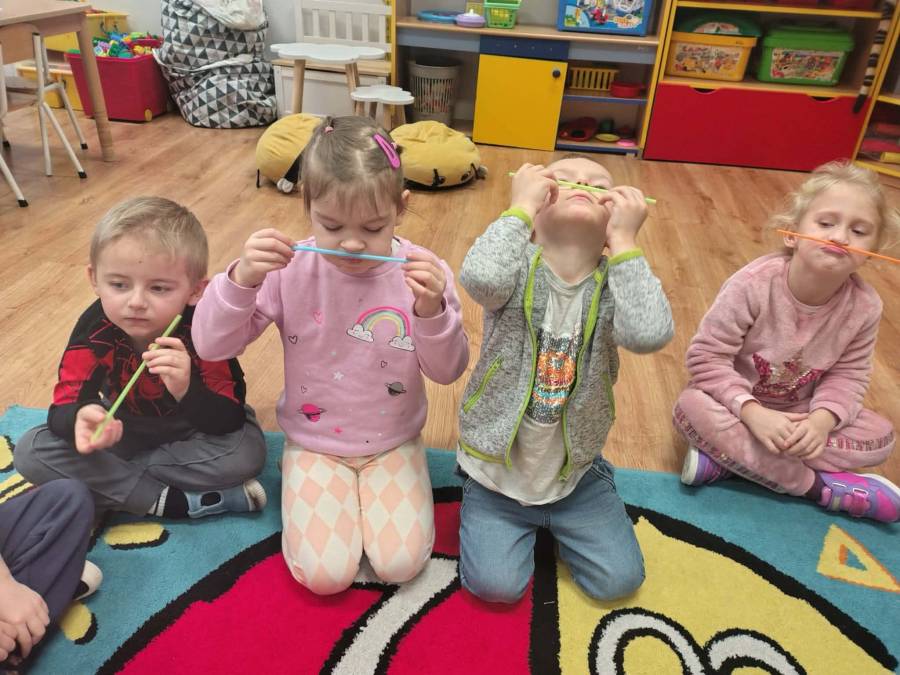 Ślimaczki i Pszczółki obchodziły Dzień Słomki w ramach Projektu Edukacyjnego "Logopedyczny Kalendarz Świąt Nietypowych'. Dzieci wzmacniały mięśnie twarzy, poprawiały tor oddechowy, korygowany pozycję spoczynkową języka. Wszystkie ćwiczenia wykonywały z bohaterką dnia - słomką.