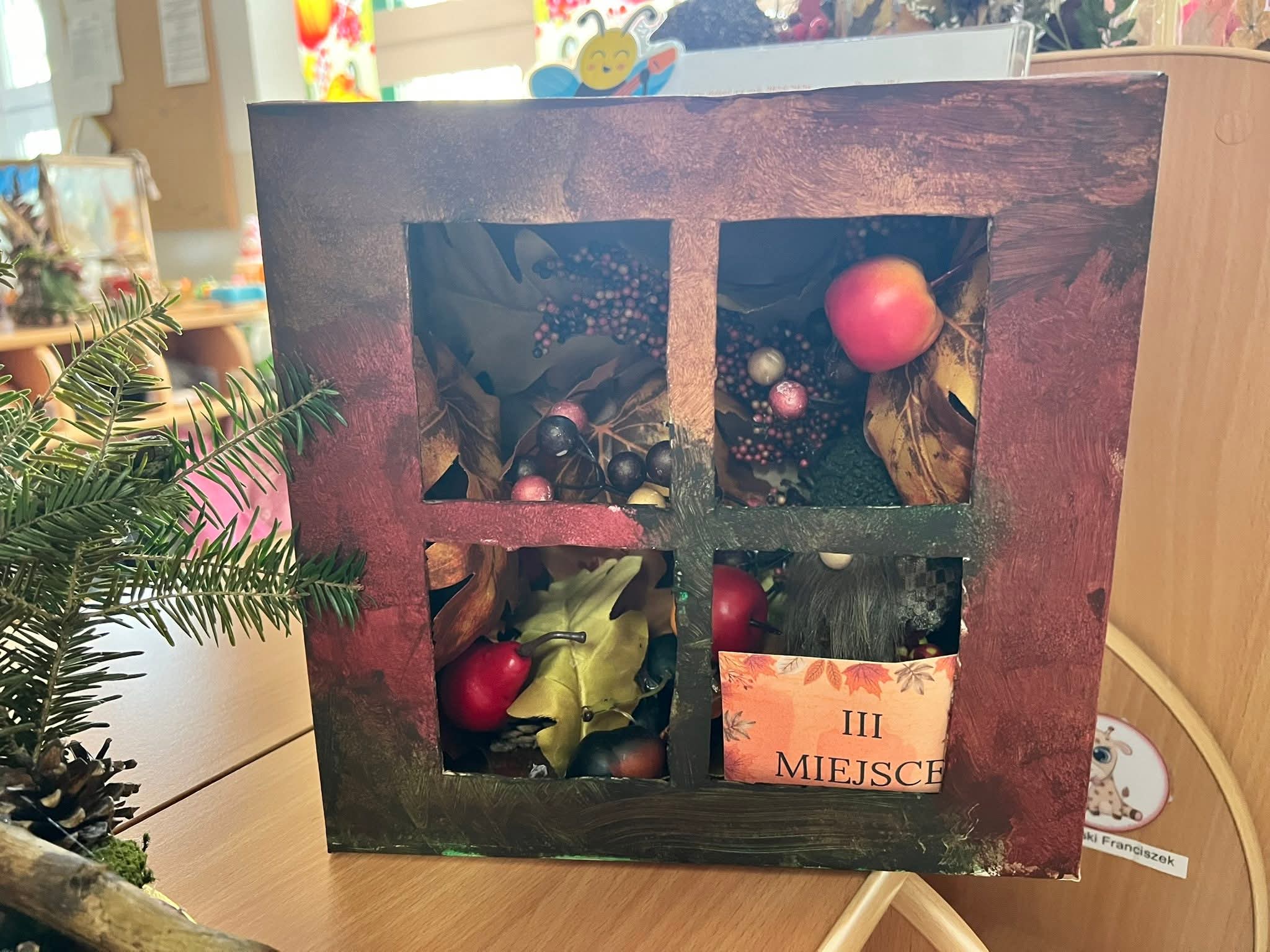 Wielkie gratulacje dla Amelki z grupy Krasnoludków za zajęcie II miejsca w Międzyprzedszkolnym konkursie plastyczno-techniczny pt. "Jesienny pejzaż" zorganizowanym przez PP Nr 3 w Radomiu. W konkursie wzięła udział także Małgosia z grupy Krasnoludków, tym razem jednak nie udało się zająć żadnego miejsca. Niezależnie od wyniku jesteśmy niezwykle dumne z pracy naszych dziewczyn.