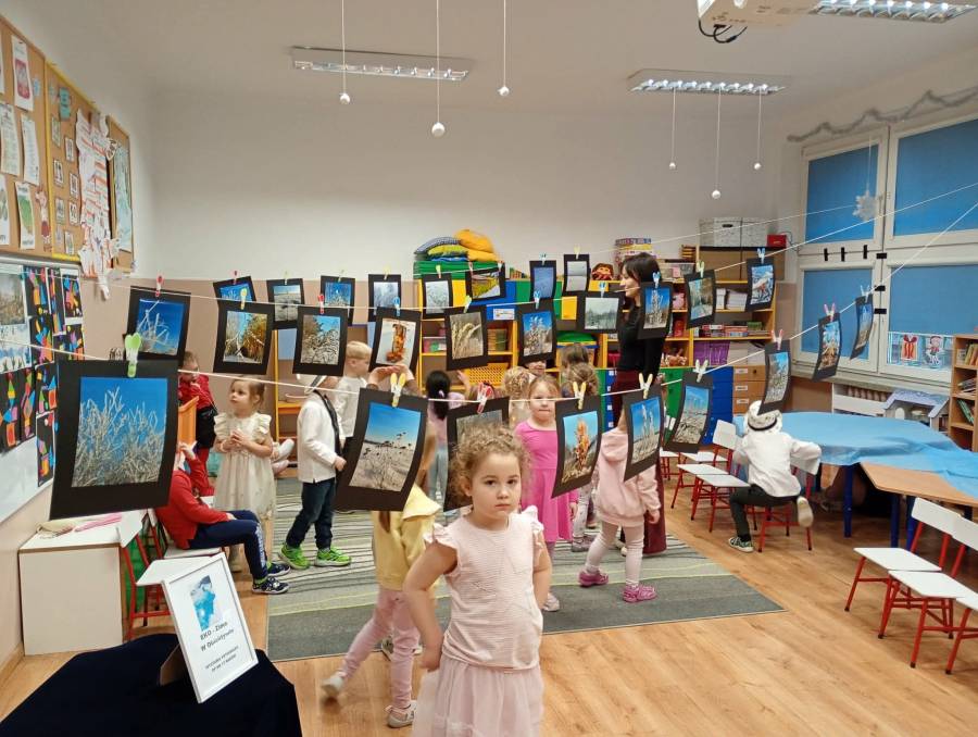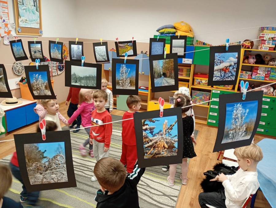 W naszym przedszkolu dzieci z grupy Motylki przy współpracy z rodzicami zorganizowali dla swoich kolegów i koleżanek wystawę fotografii pt. Eko- Zima w Obiektywie.
