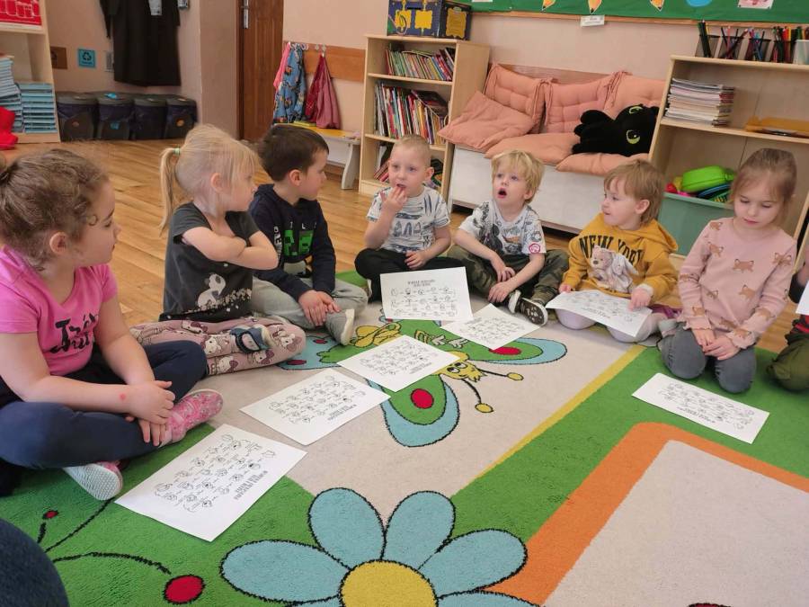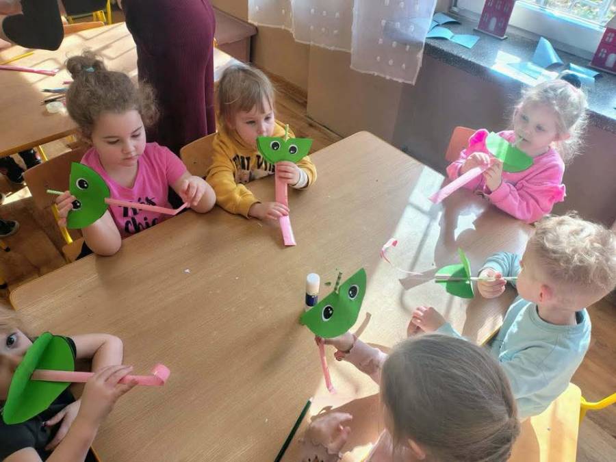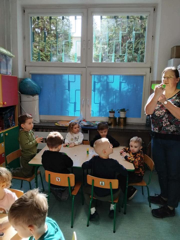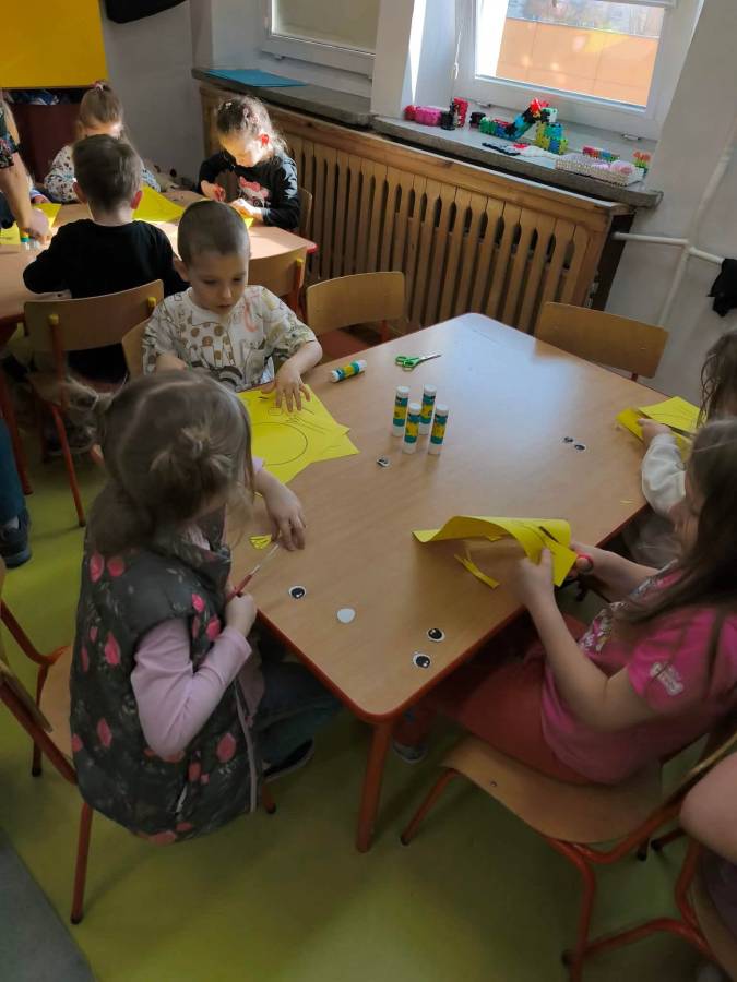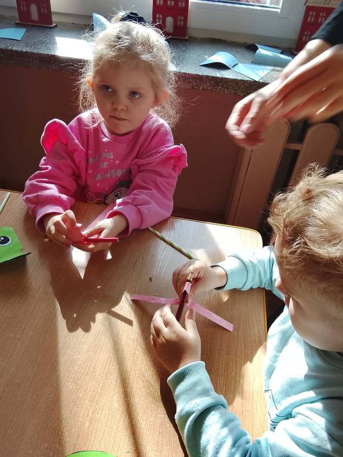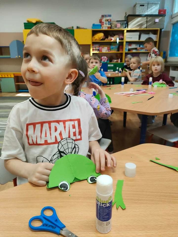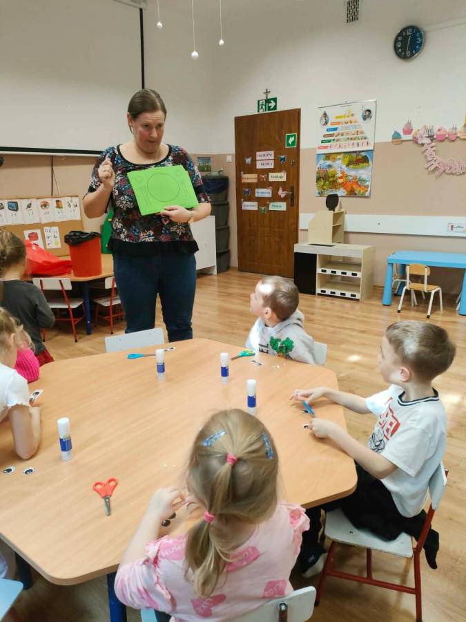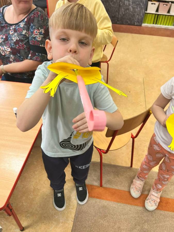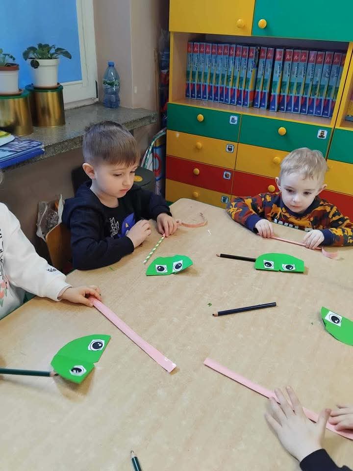 W każdej grupie zostały przeprowadzone zajęcia logopedyczne. Dzieci wykonywały ćwiczenia usprawniające artykulację, ćwiczyły motorykę małą i dużą, a także rozwijały umiejętności oddechowe. W trakcie zajęć dzieci przygotowały logopedyczne żabki - wiosenne pomocnice wykorzystywane podczas ćwiczeń oddechowych.