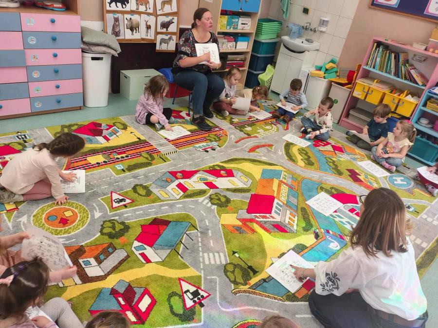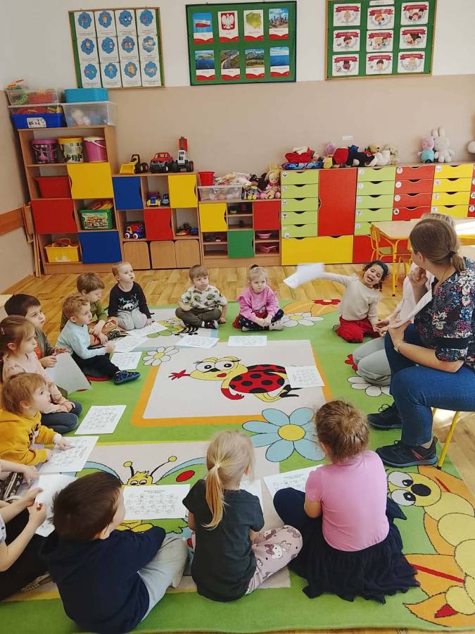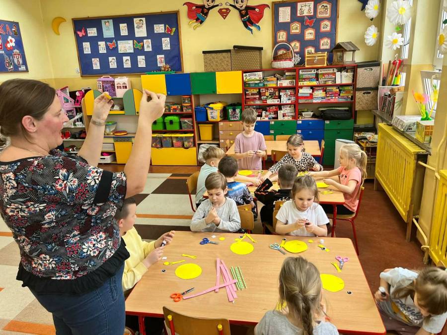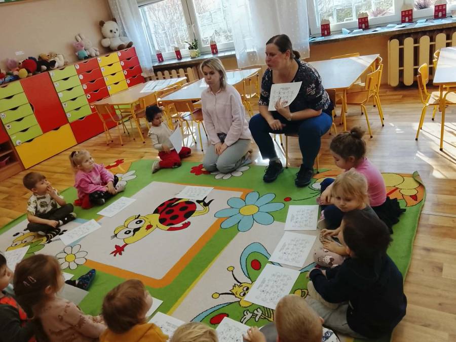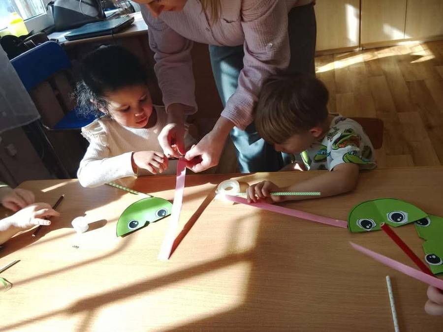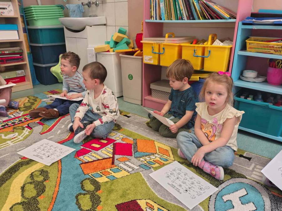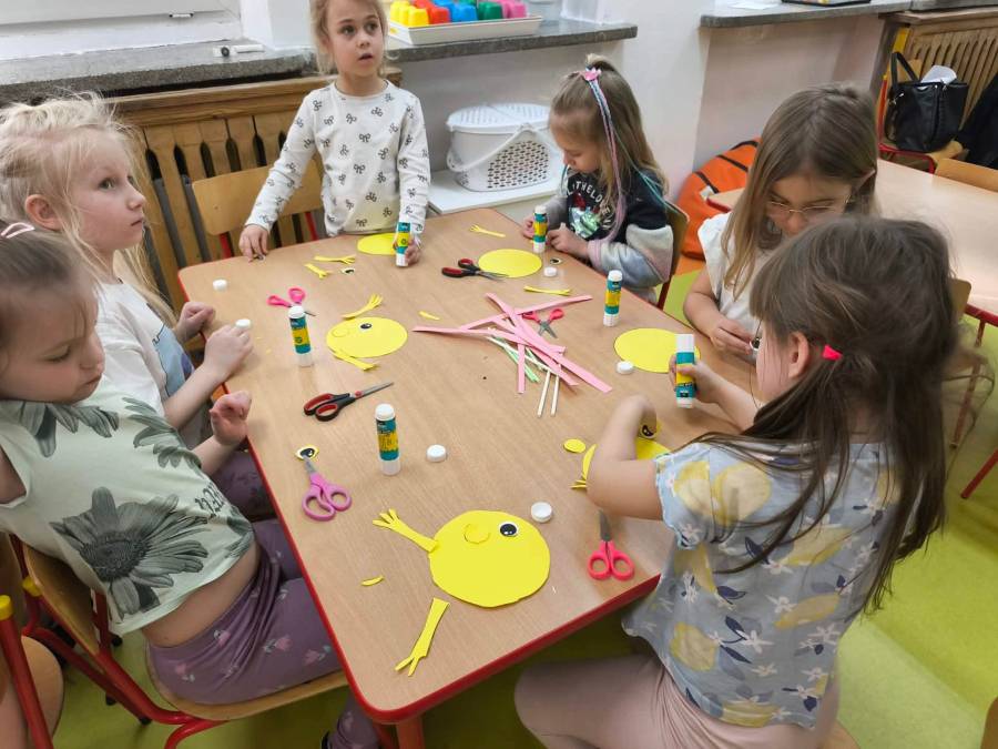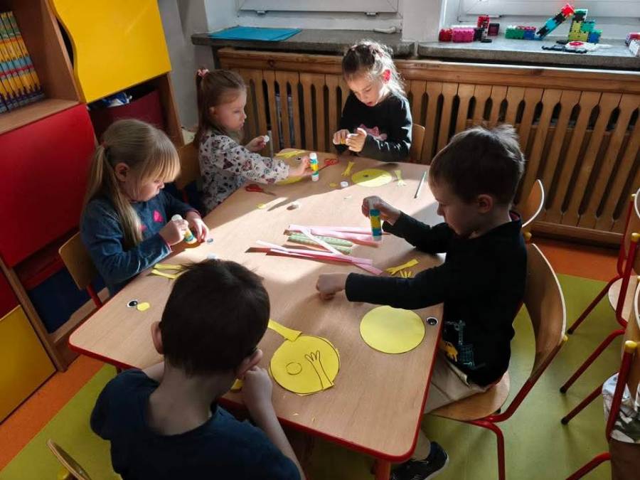 W każdej grupie zostały przeprowadzone zajęcia logopedyczne. Dzieci wykonywały ćwiczenia usprawniające artykulację, ćwiczyły motorykę małą i dużą, a także rozwijały umiejętności oddechowe. W trakcie zajęć dzieci przygotowały logopedyczne żabki - wiosenne pomocnice wykorzystywane podczas ćwiczeń oddechowych.