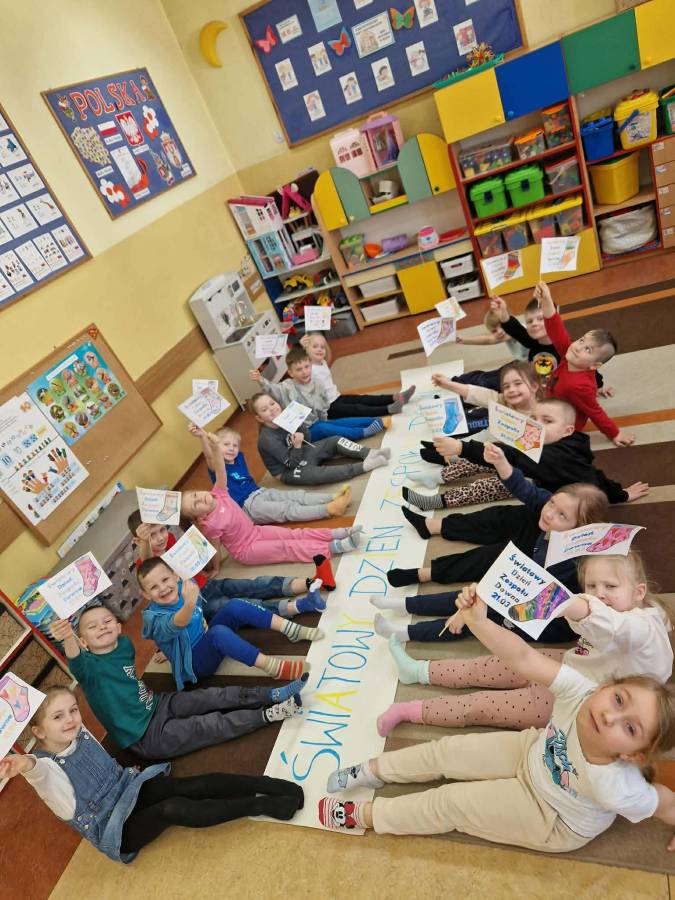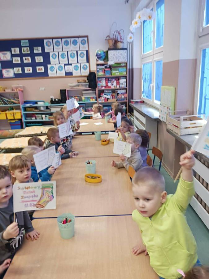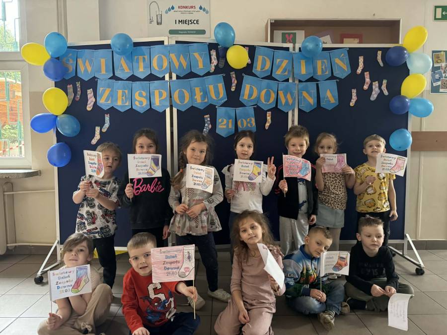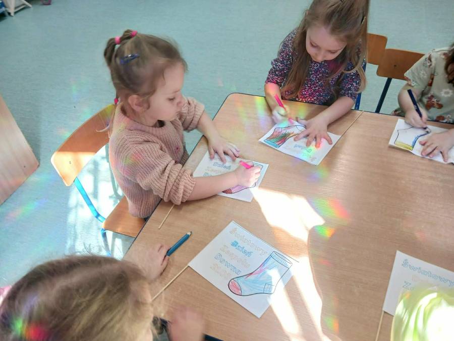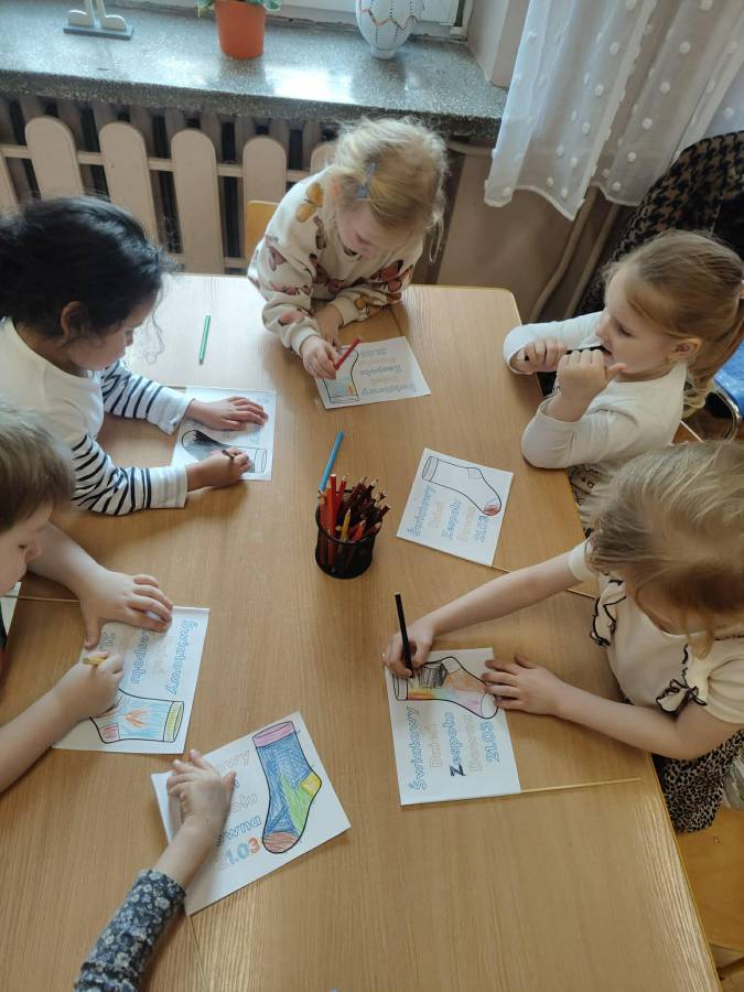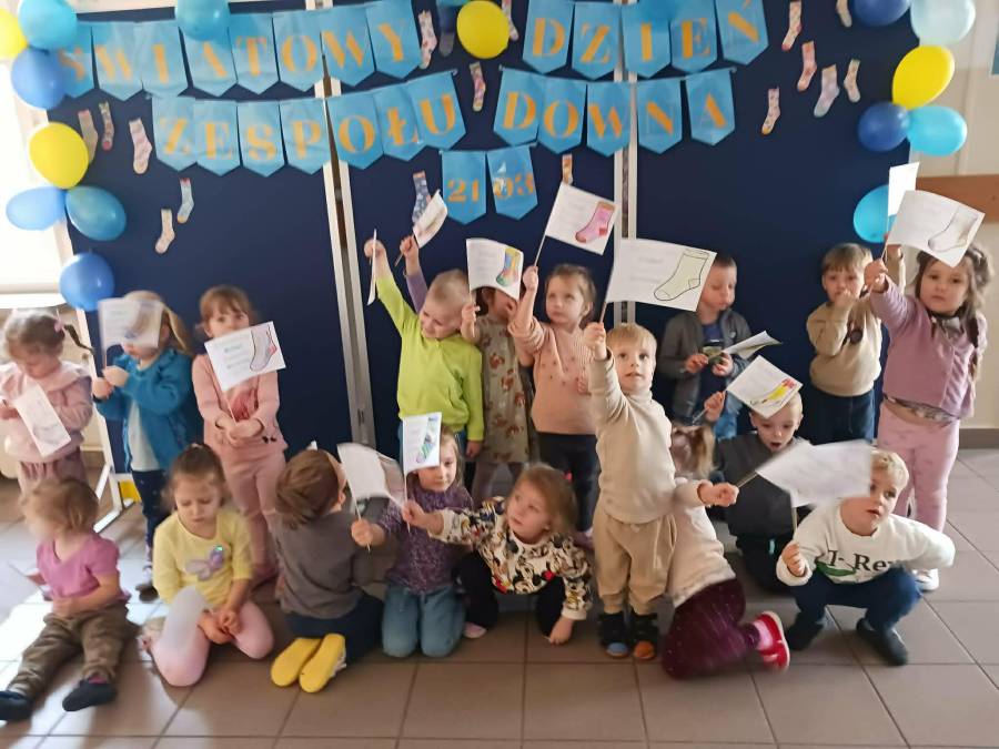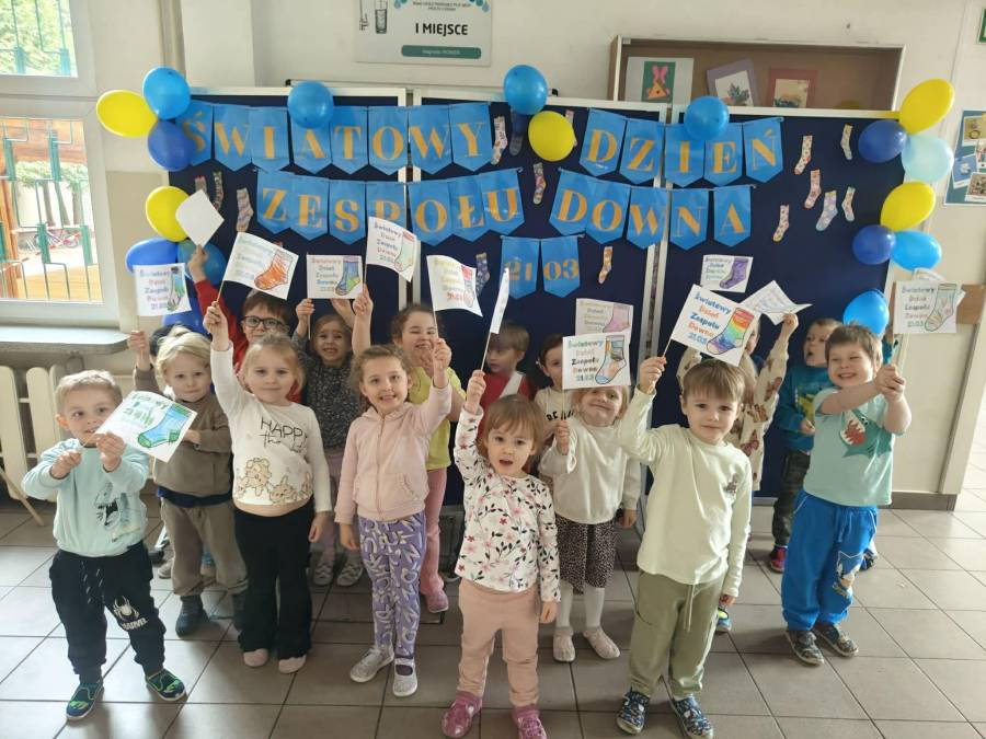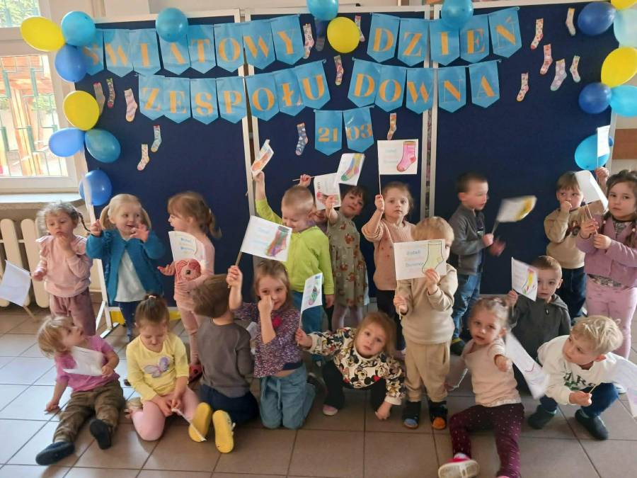 Z okazji Światowego Dnia Zespołu Downa nasze przedszkolaki wzięły udział w wyjątkowych zajęciach, które miały na celu promowanie wsparcia, zrozumienia i akceptacji wobec osób z Zespołem Downa. Podczas spotkania dzieci dowiedziały się, czym jest Zespół Downa oraz jak ważne w codziennym życiu są empatia, szacunek i otwartość na drugiego człowieka. Dodatkowo przedszkolaki wykonały i pięknie pokolorowały flagi upamiętniające ten szczególny dzień, okazując w ten sposób swoją solidarność i wsparcie.