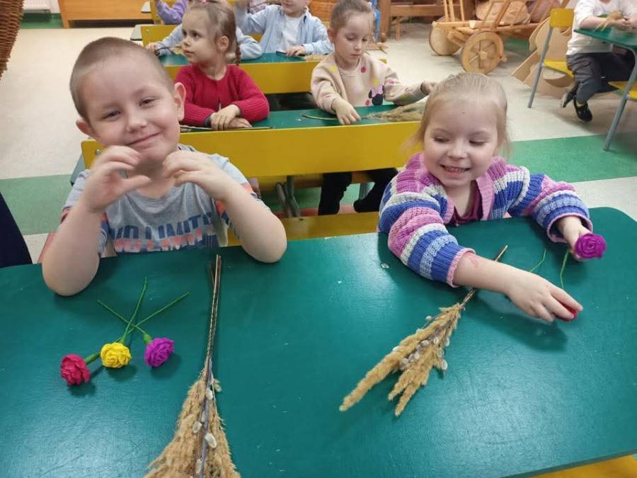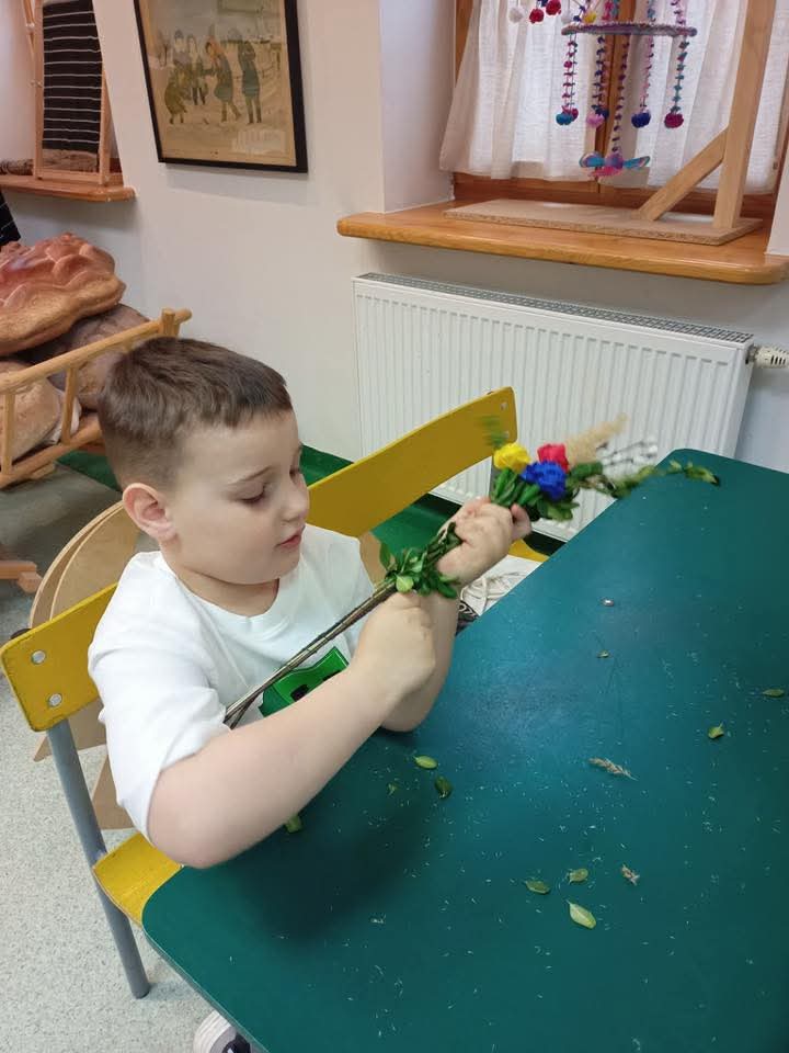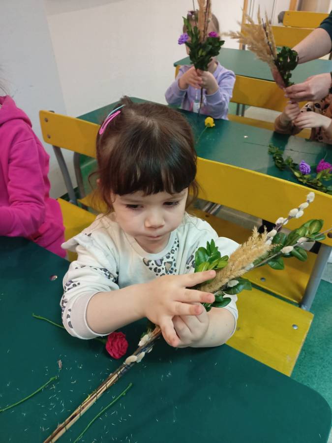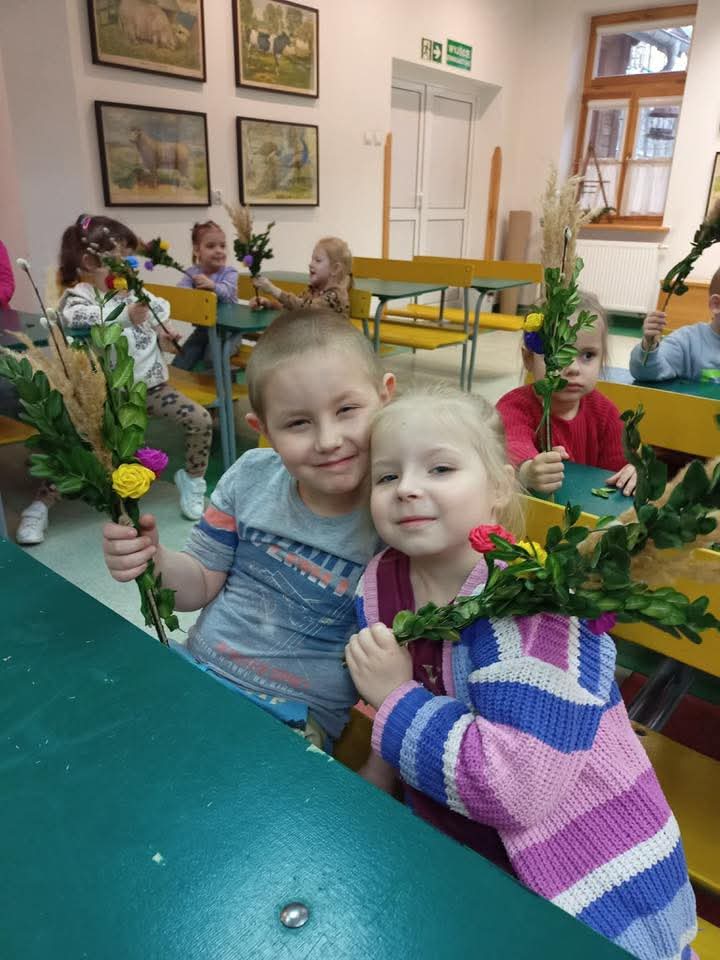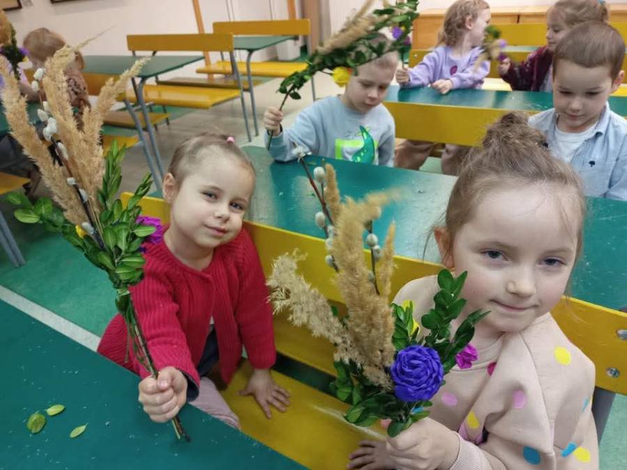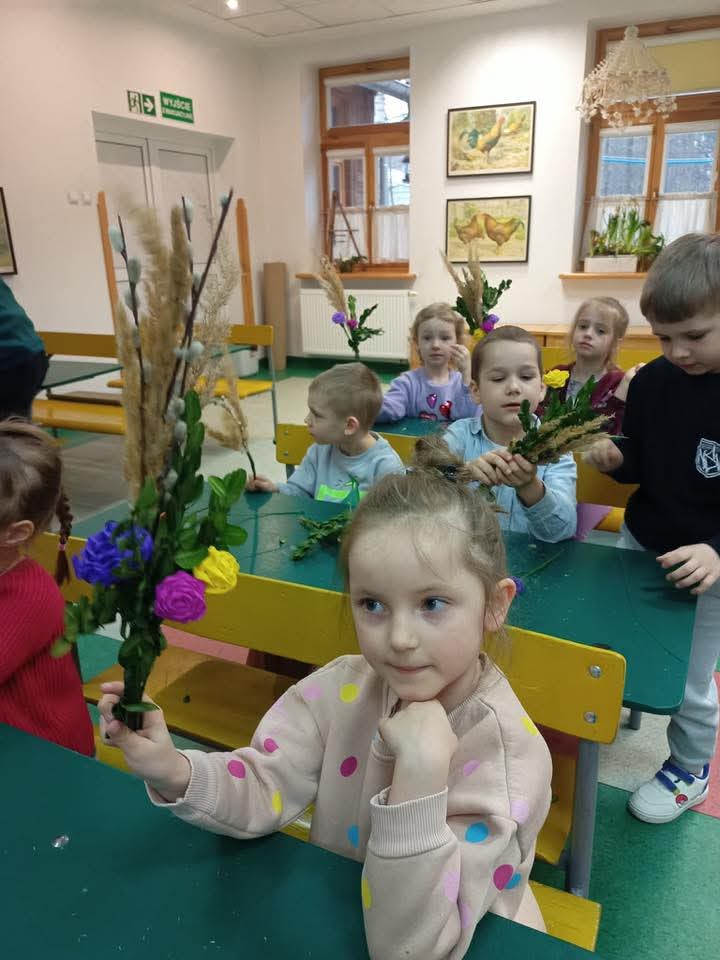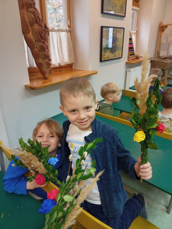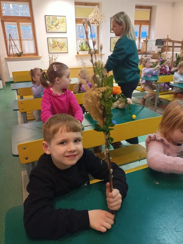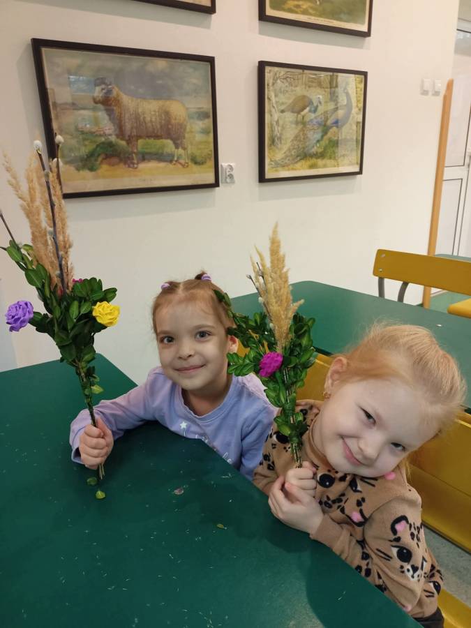 Na zajęciach plastycznych każdy wykonał tradycyjną palmę radomską.