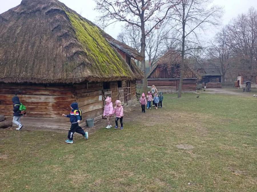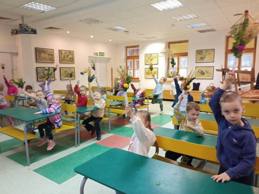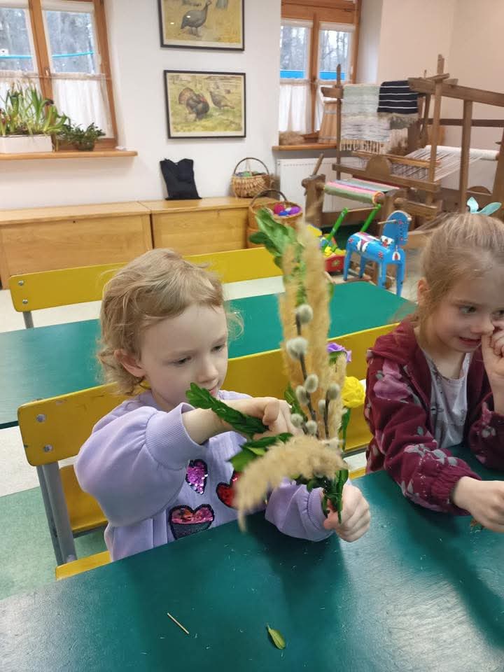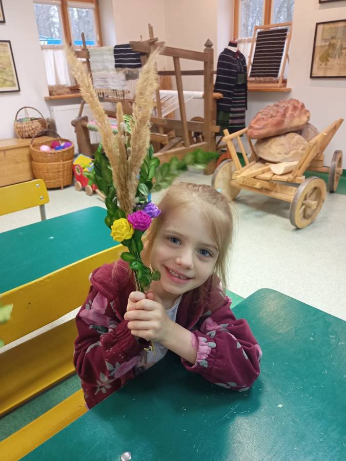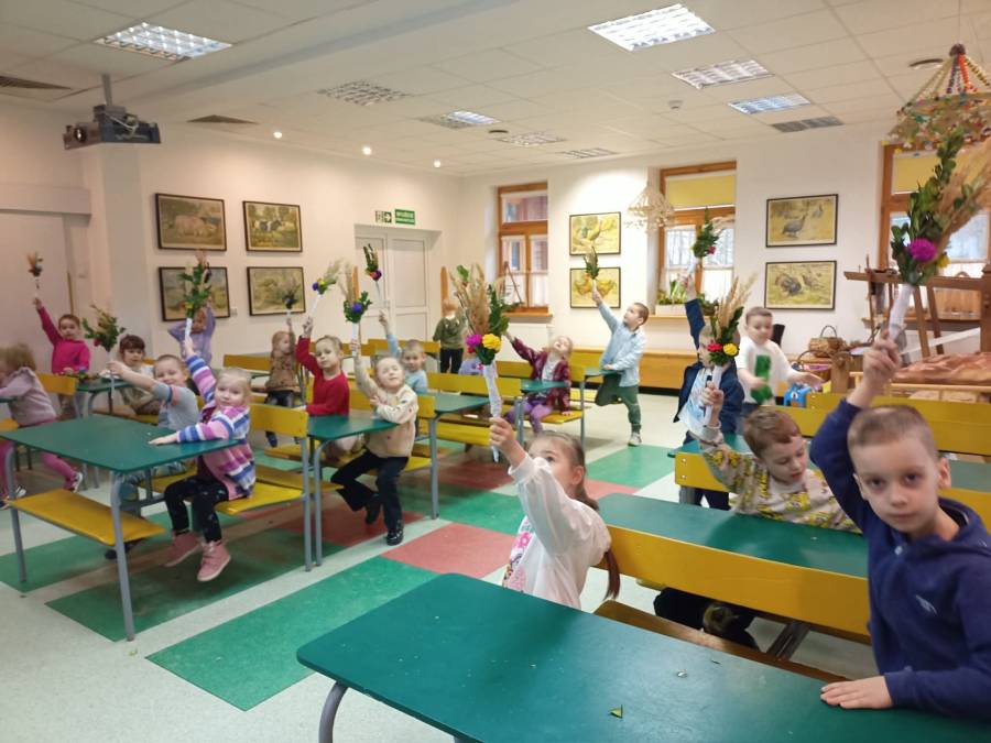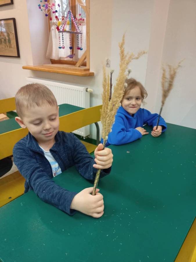 Dzieci z grupy Motylki odwiedziły Muzeum Wsi Radomskiej, aby dowiedzieć się czegoś o zwyczajach i tradycjach ludowych związanych z Niedzielą Palmową i Wielkim Tygodniem. Mieliśmy okazję zwiedzić ekspozycje w chałupie, gdzie prezentowane były przygotowania do Niedzieli Palmowej - wyrób palm.