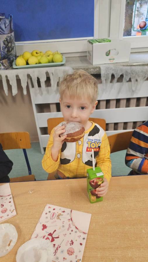Dziś nasza grupa świętowała Tłusty Czwartek. Było słodko, radośnie i bardzo pysznie! Dzieci z uśmiechem zajadały pączki i świetnie się bawiły.